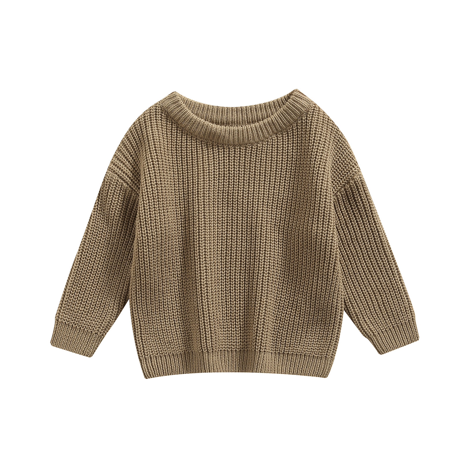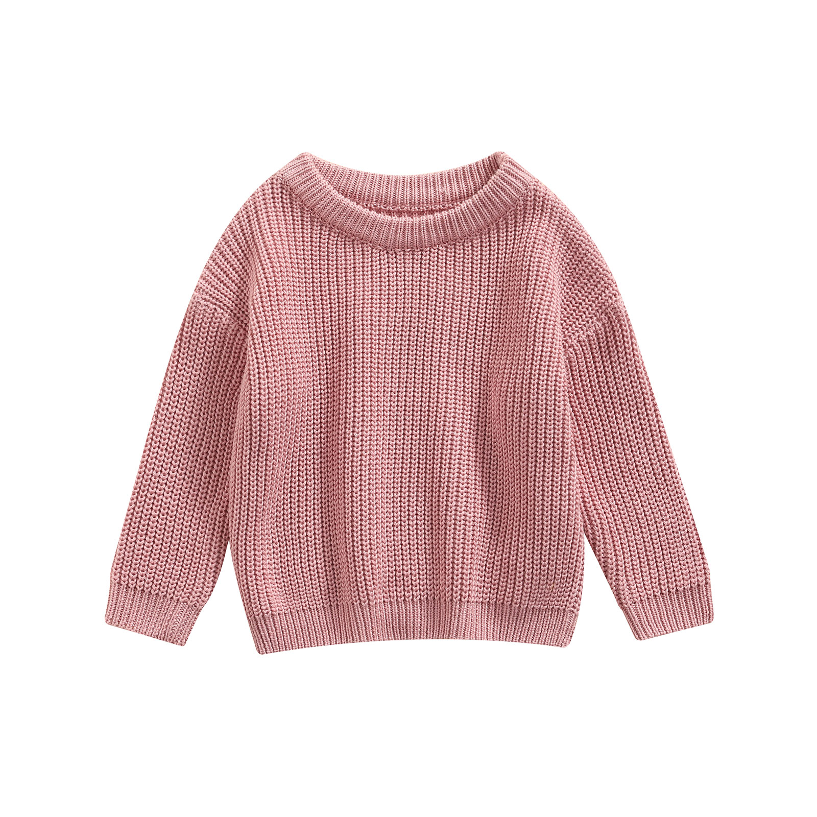 Toddler Baby Round Neck Sweaters, Winter Warm Long Sleeve Candy Color Knit Pullovers
