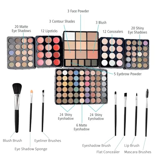 Makeup Kit Sets for Teens Women Full Kit with Bag,All in One Make-Up Gift Set Including 20 Colors Neutral Eyeshadow Palette,Lip Glosses,Eyeliner,Mascara,Eyebrow Pencil,Foundation,Brushes & More Kits
