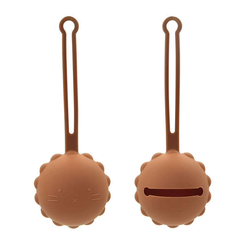 2 Made from a soft silicone with a convenient strap, this pacifier case is easy to attach to a stroller or diaper bag.