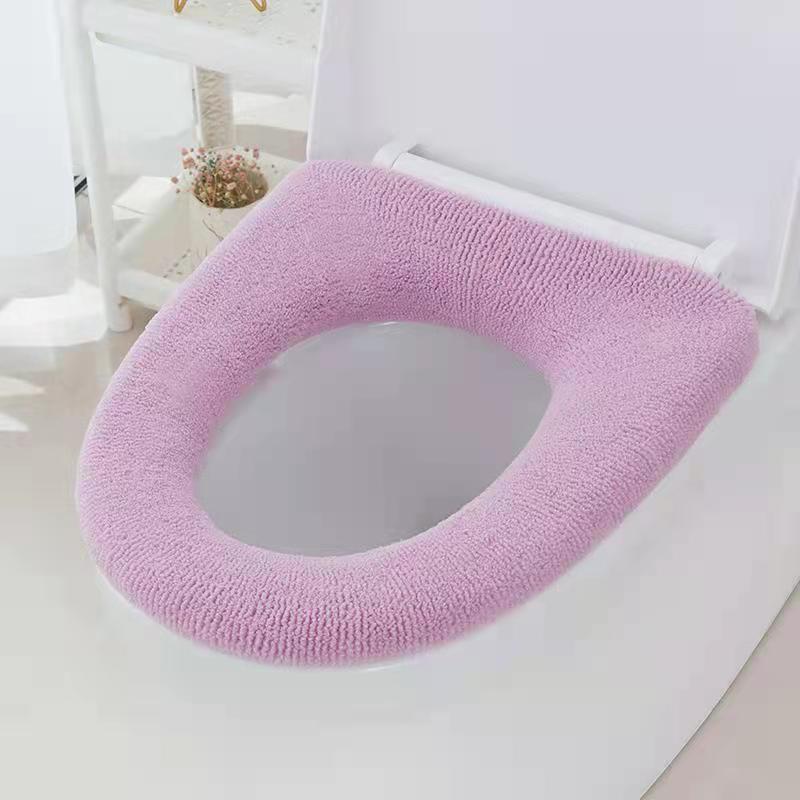 1Pcs Winter Warm Toilet Seat Cover Closestool Mat Washable Bathroom Accessories Knitting Pure Color Soft O-shape Pad Bidet Cover