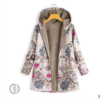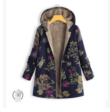 1pcs/lot Women Winter Warm Floral Hooded Jacket Flower Print Hoody Vintage fleece print coat