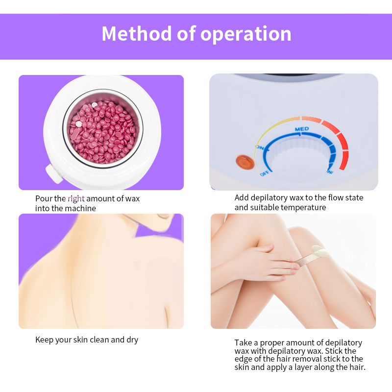 Suitable for all types of waxes: hard waxing, strip waxing, paraffin waxing.