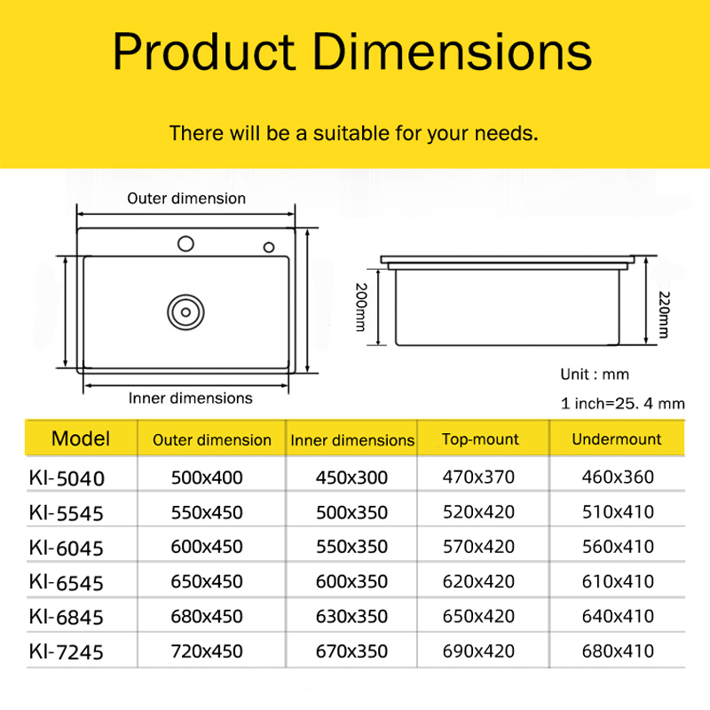 Hanki KI-5545 Stainless Steel Kitchen Sink Single Bowl Handmade Brushed Wash Basin Above Counter For Kitchen Fixture With Drainage Accessories