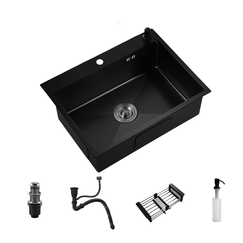 304 Stainless Steel Kitchen Sink Topmount Single Bowl DarkGray Wash Basin For Home Fixture With Kitchen Faucet Drain Accessories