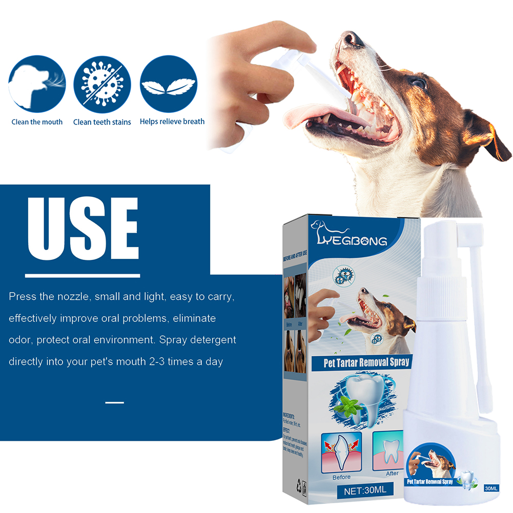 Pet Tartar Removal Spray Mint-Flavor Dog-Dental Spray for Easy Brushless Cleaning Brushless Oral Care Breath Freshener Pet Spray Teeth Cleaner Oral Healthy Pet Dog Supplies Stain Odor Removers Cleaning Oral Disease