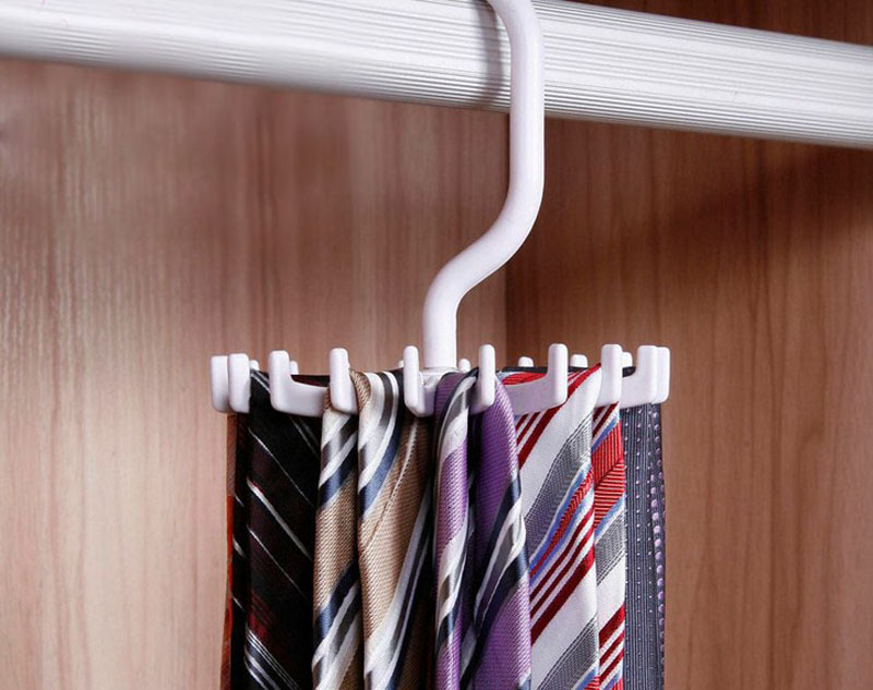 360 Degree Rotating 20 Hooks Tie Rack Belt Silk Scarf Storage Organizer Portable Hanger Space Saving Wardrobe Bedroom Decor