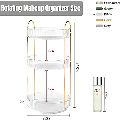 360 Rotating Makeup Organizer for Vanity, Bathroom Countertop Organizer Spinning Perfume Organizer, High-Capacity Cosmetic and Skincare Dresser Make Up Holder Rack (3 Tiers, White)