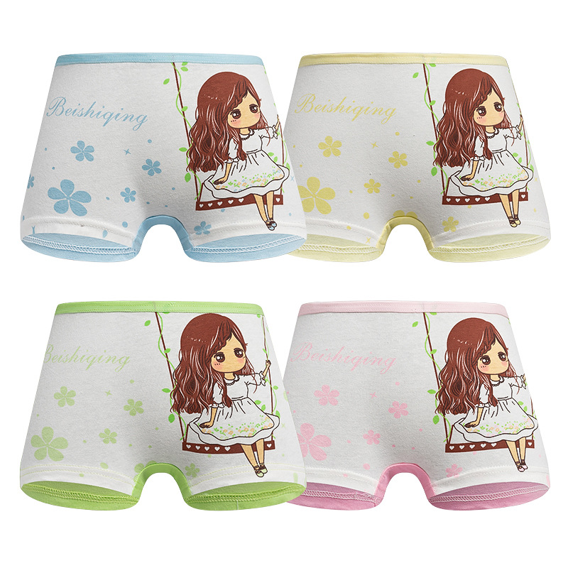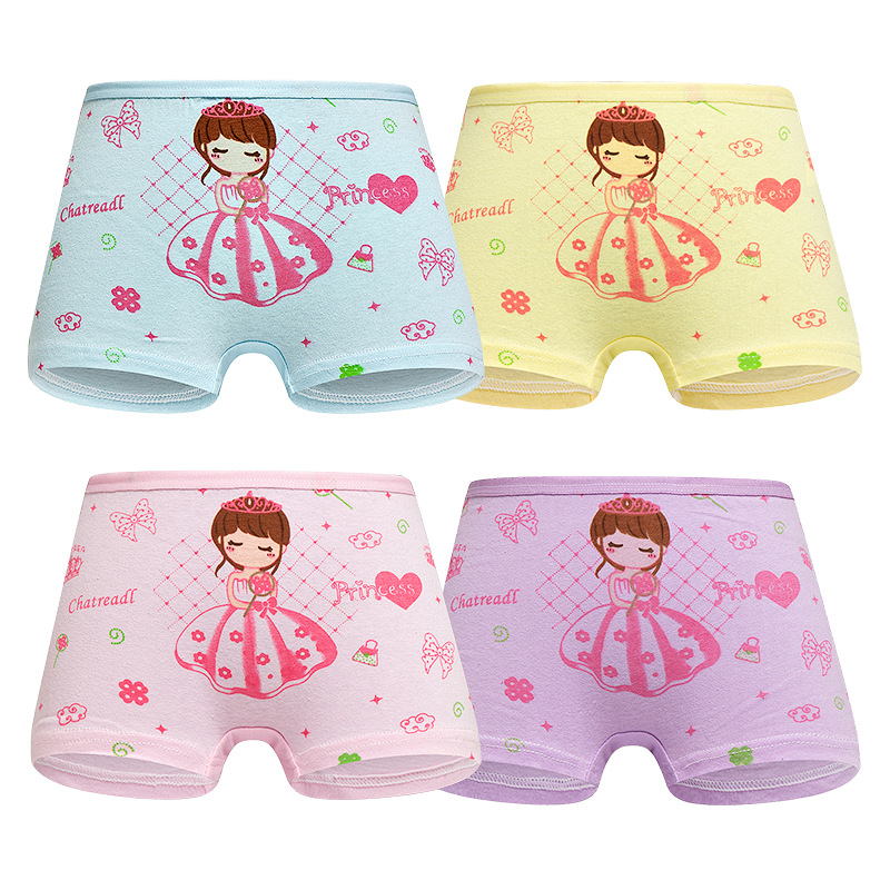 4 Pieces/Lot 2-12Y Children Underwear High Cotton Girls Panties Cute Cat Pattern Kids Boxer Briefs Child Soft girl Pants