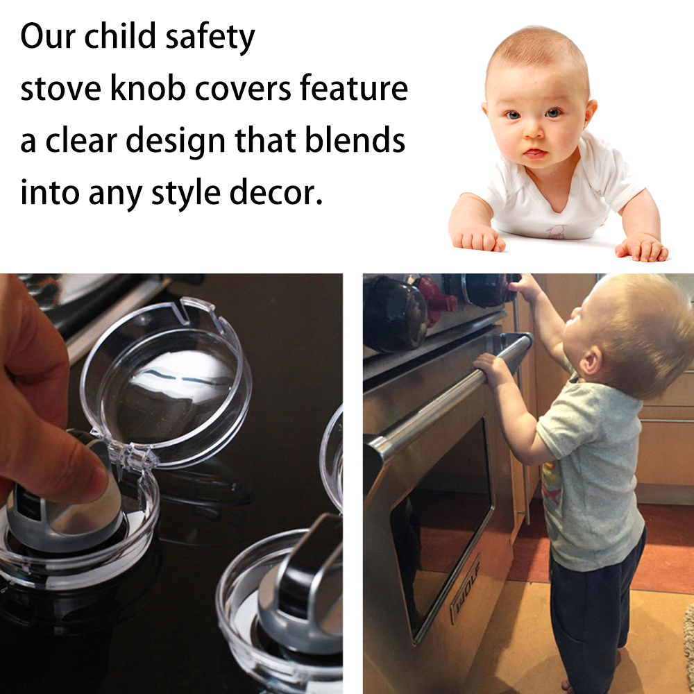 Our child safety stove knob covers feature a clear design that blends into any style decor.
