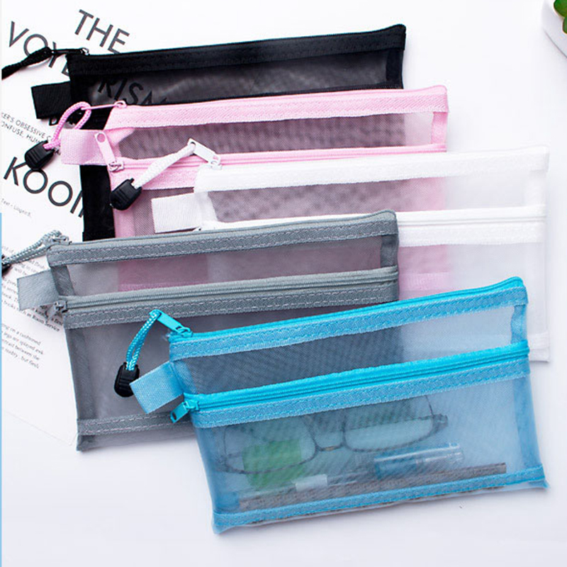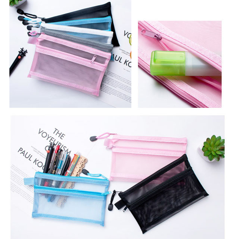 5pcs Double Layer Mesh Document Bag A4 A5 A6 File Folder Bag Pen Organizer Stationery Storage Cosmetic Bag Makeup Storage