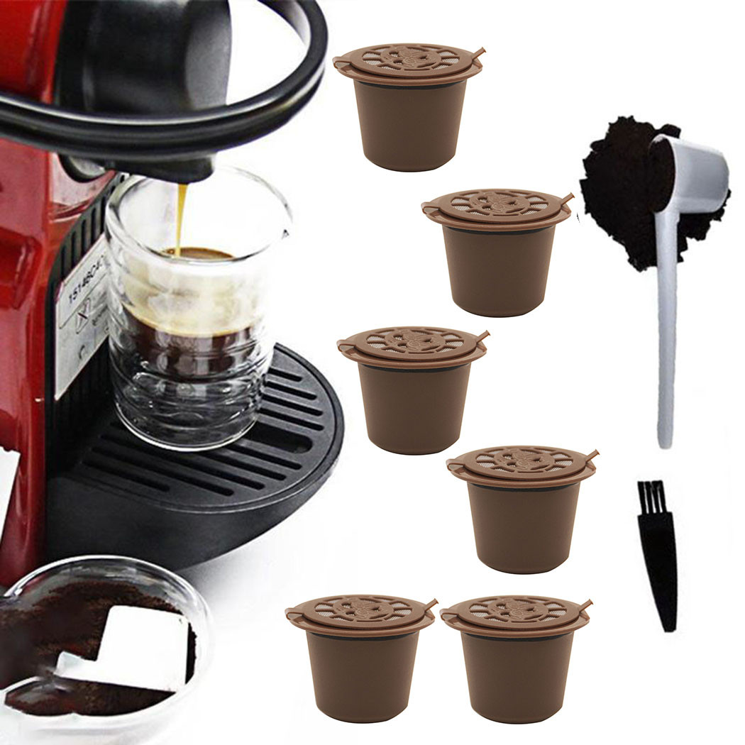 6Pcs Reusable Coffee Capsule Pod Refillable Coffee Refilling Filter Cup For Nespresso Capsule Coffee Machine