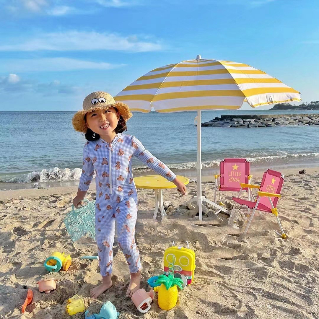 7973 Baby Girl Swimwear Children Swimsuit With Hat Summer Long Sleeve Bodysuit Baby Swimsuit Boy 1-7T Kids Swimsuit