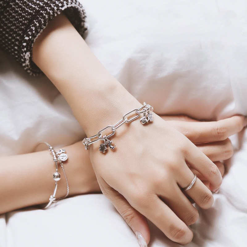 925 Sterling Silver Earring Me Ring Bead Round Connector Charm Double fit Original Pandora Me Link Chain Bracelet Jewelry