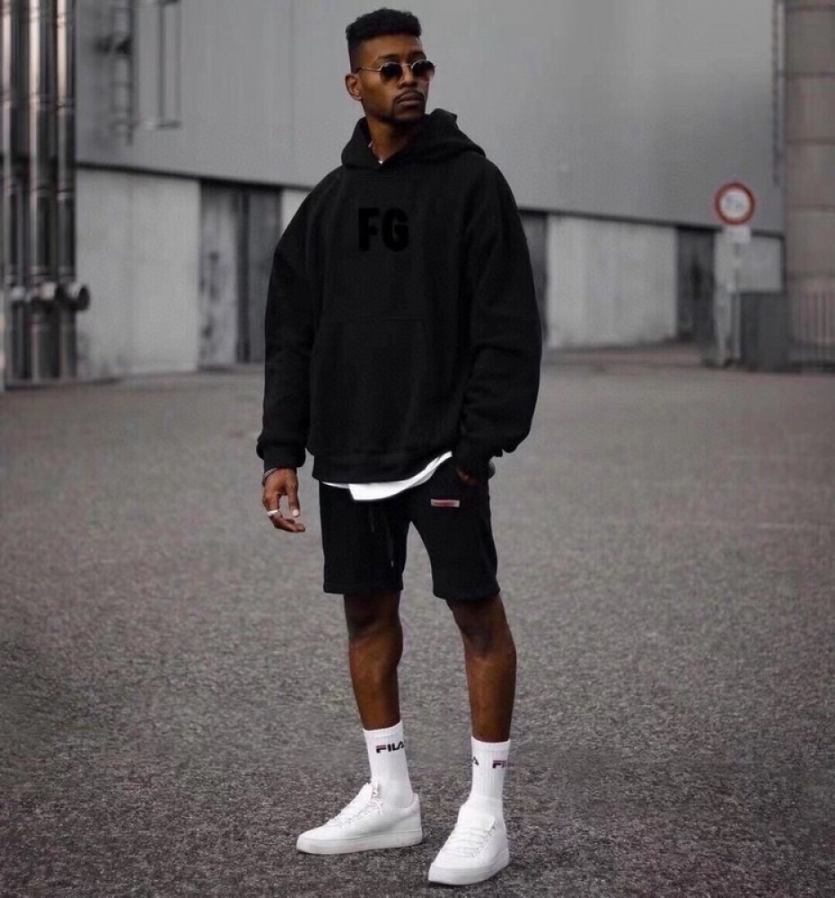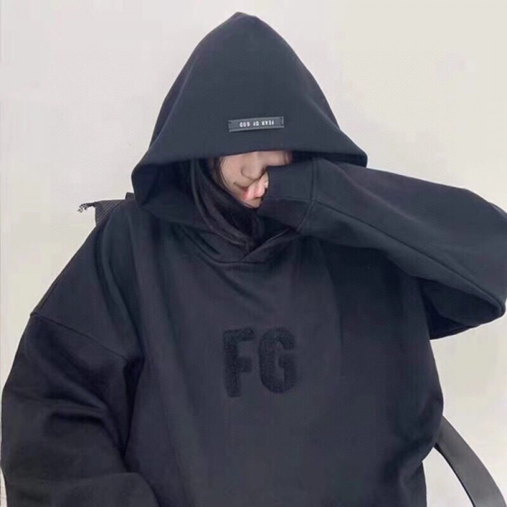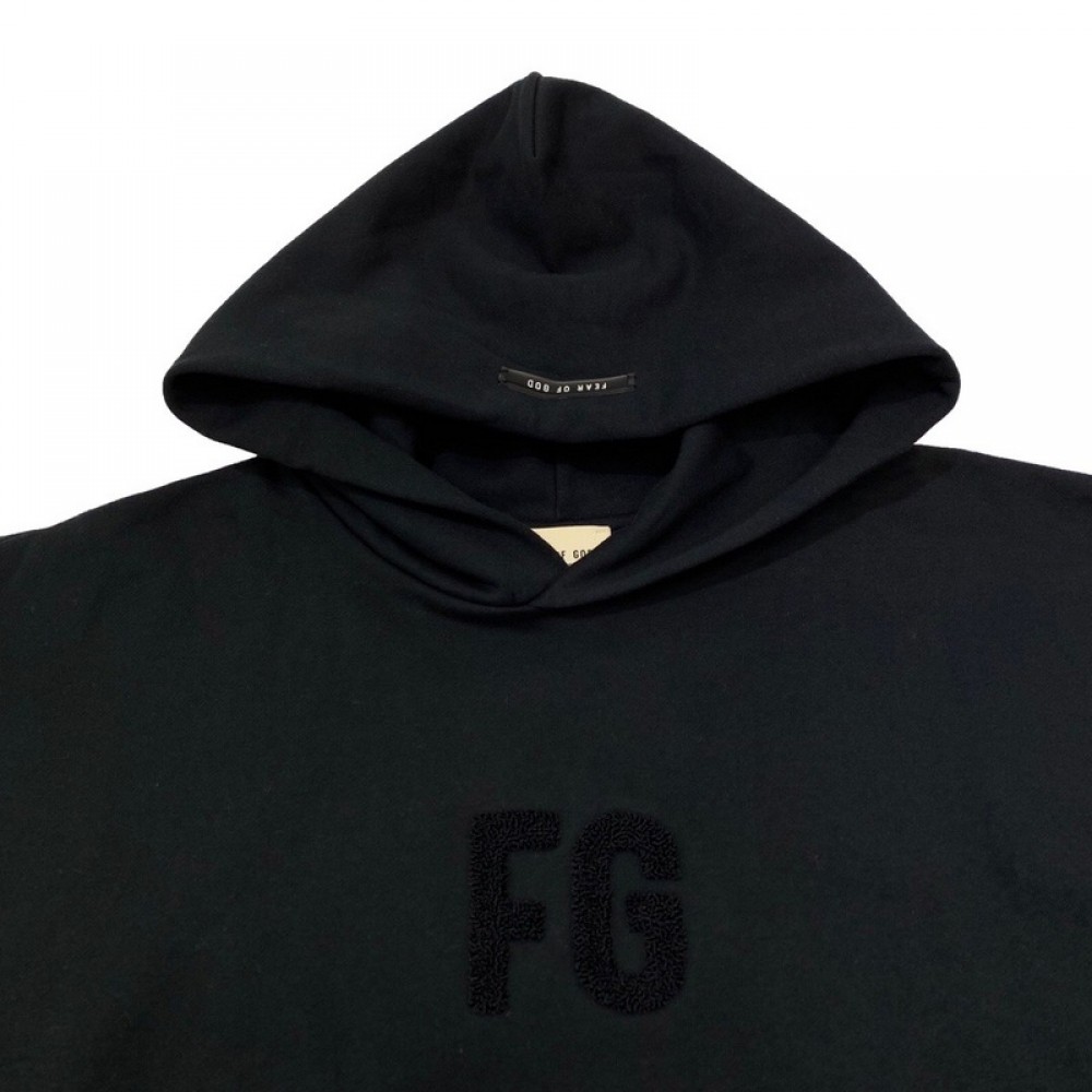 A+ Quality Fear of God Chenille logo Initial Hoodie Black