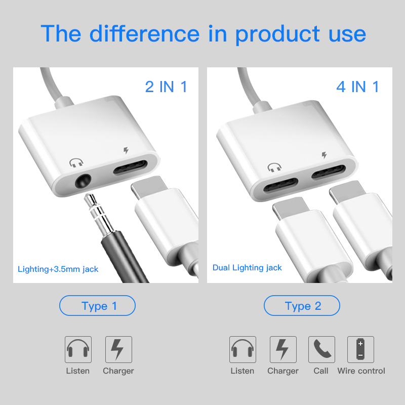 Product Name : 2 in 1 3.5mm jack AUX Charging Lighting Adapter