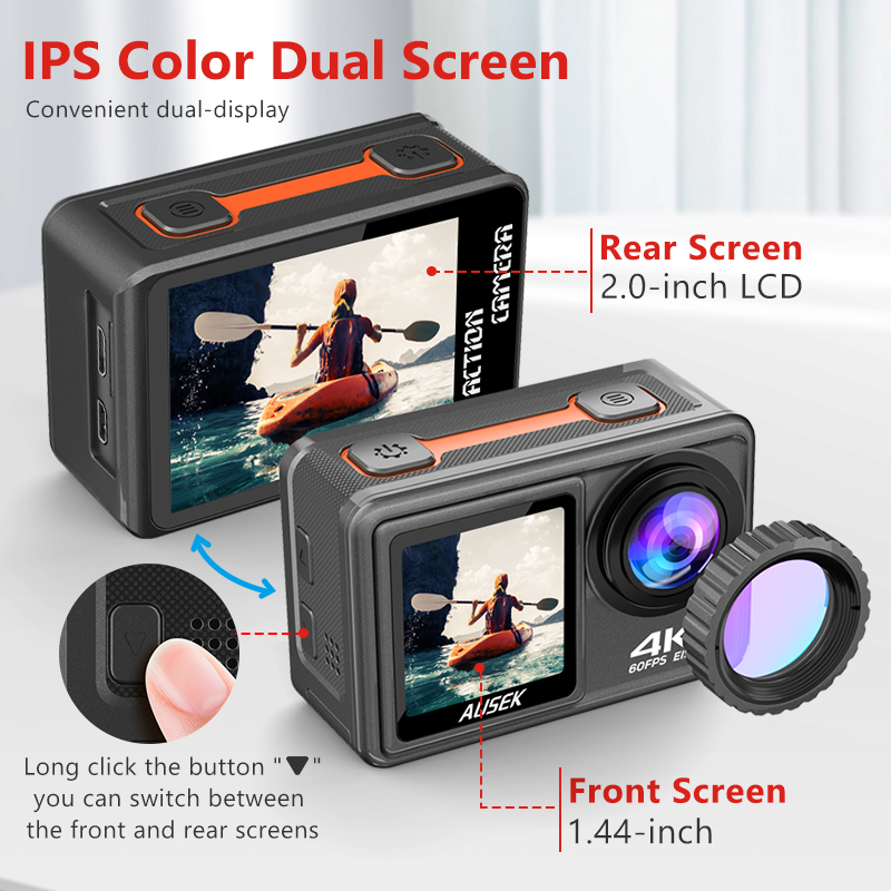 AXNEN AUSEK Action Camera 4K 60FPS EIS Video with Optional Filter Lens 24MP Po 1080P Webcam Vlog WiFi Sports Cam with Remote