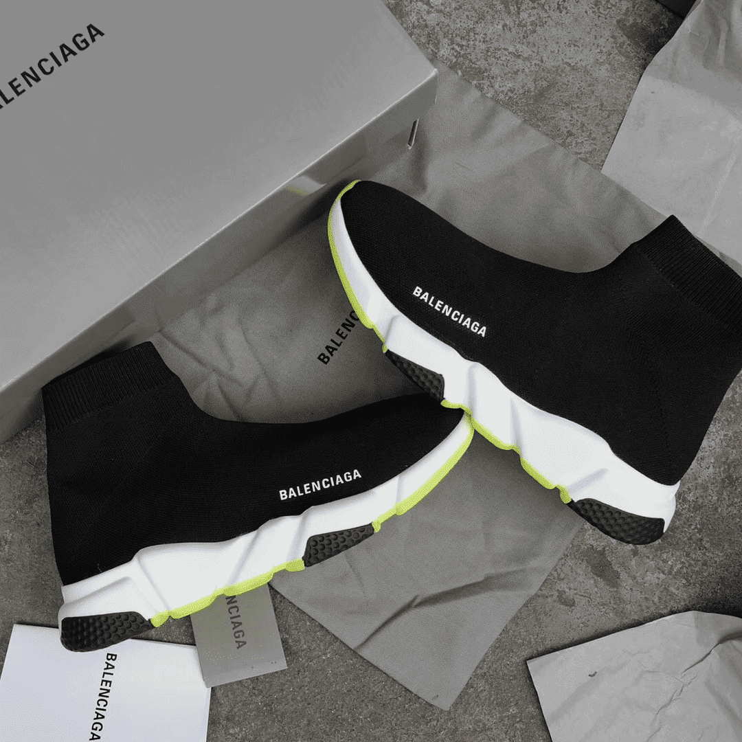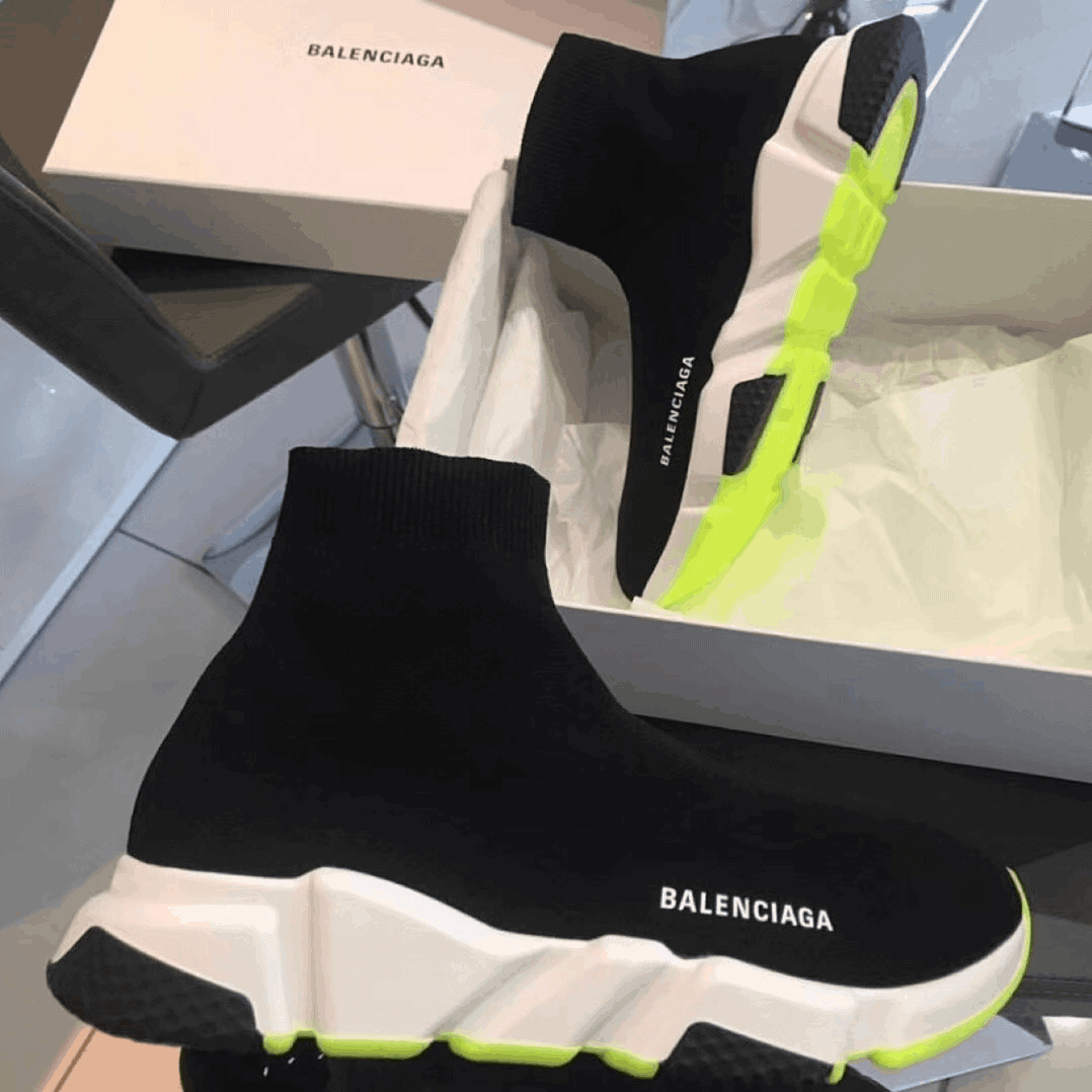 BALENCIAGA SPEED TRAINER BLACK WHITE NEON SS19 – BB12