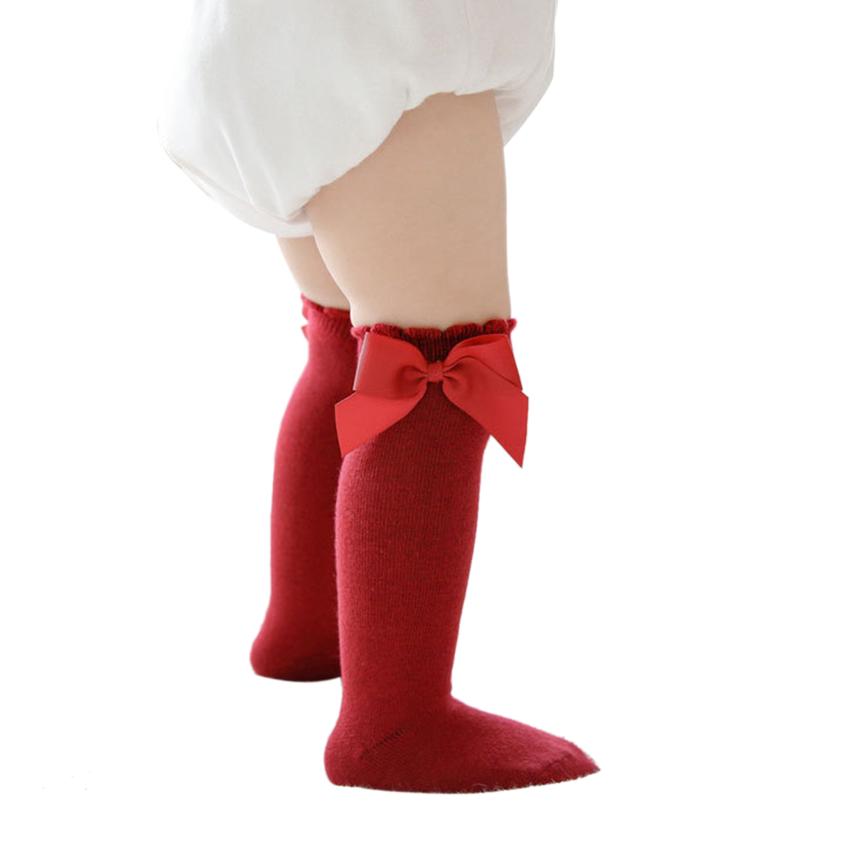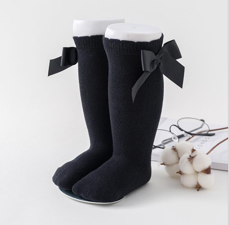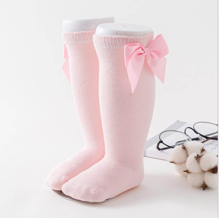 Baby Girls Cotton Long Socks, Solid Color Big Bow Knee High Stocking, Cute Lacework Princess Leg Warmer, Floor Slipper