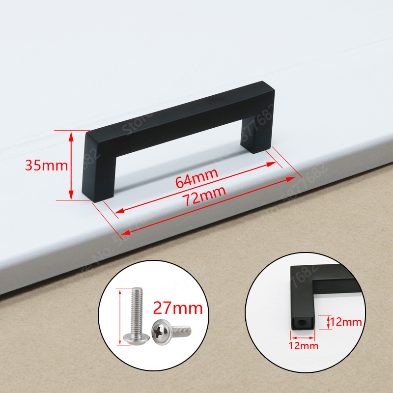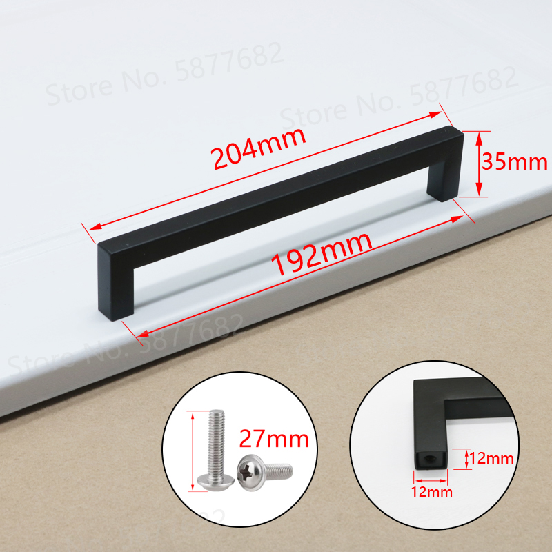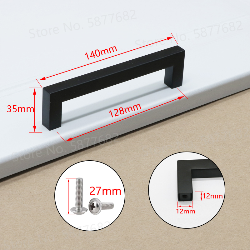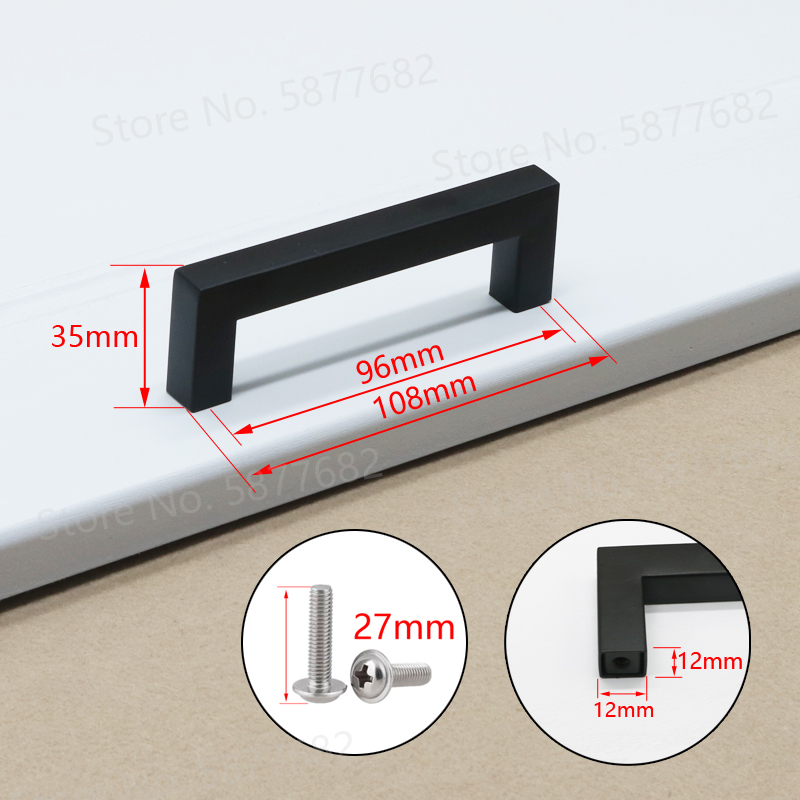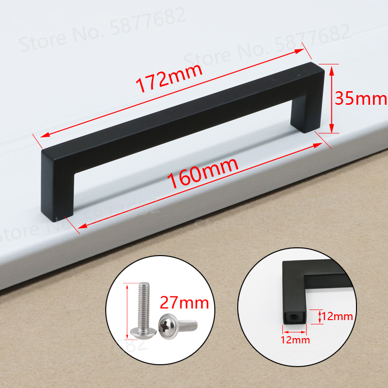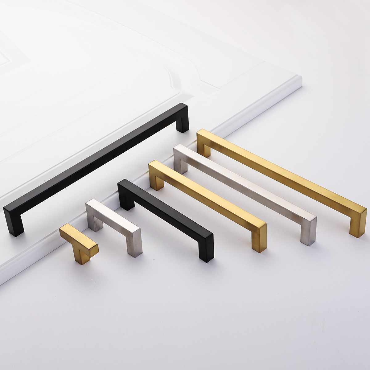 Black Cabinet Handle Square Furniture Hardware Stainless Steel Kitchen Door Knobs Cupboard Wardrobe Drawer Pulls