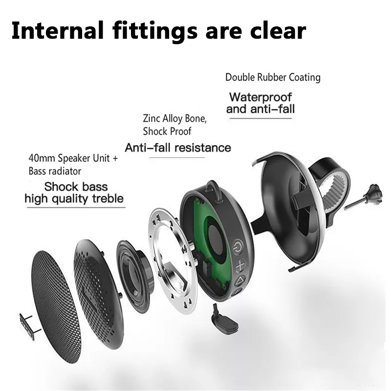 Bluetooth Bike Speaker with Detachable Bicycle Mount Shockproof & Dustproof Outdoor Riding Built-in Mic and TF Card Hands Free