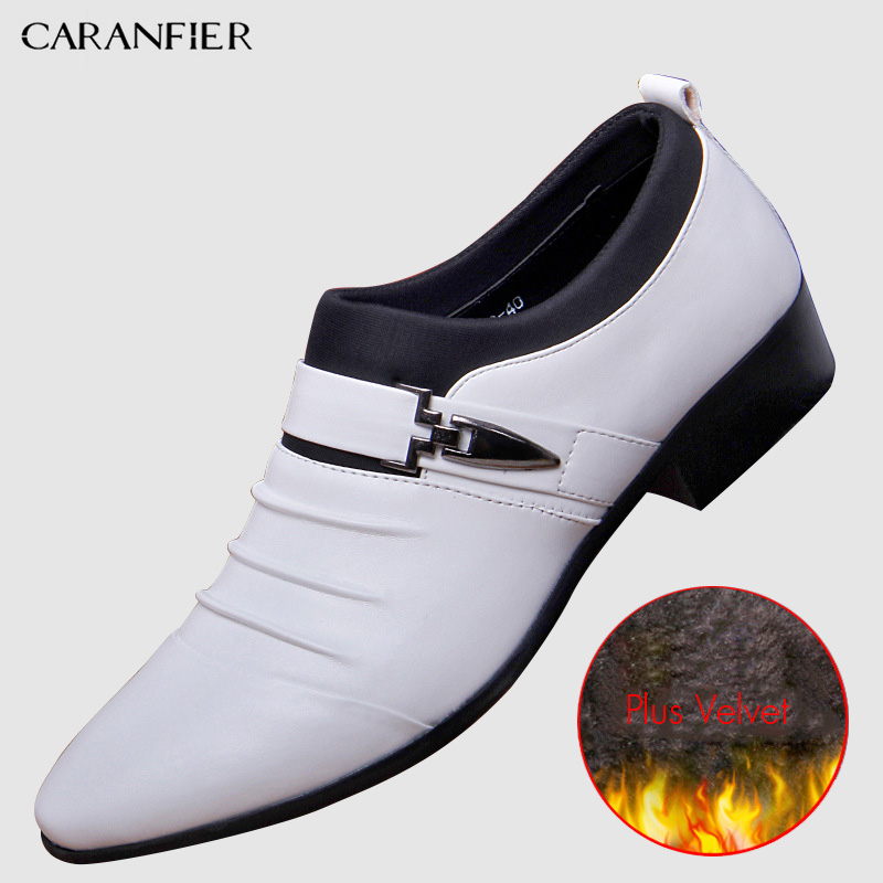 CARANFIER British Men's Slip On Split Leather Pointed Toe Men Dress Shoes Business Wedding Oxfords Formal Shoes For Male