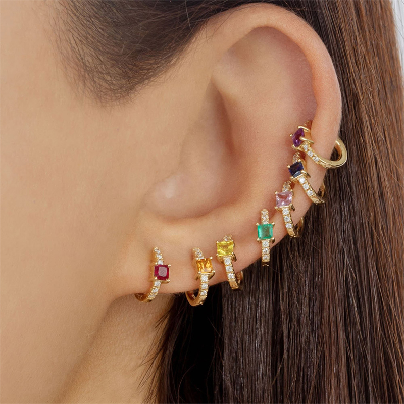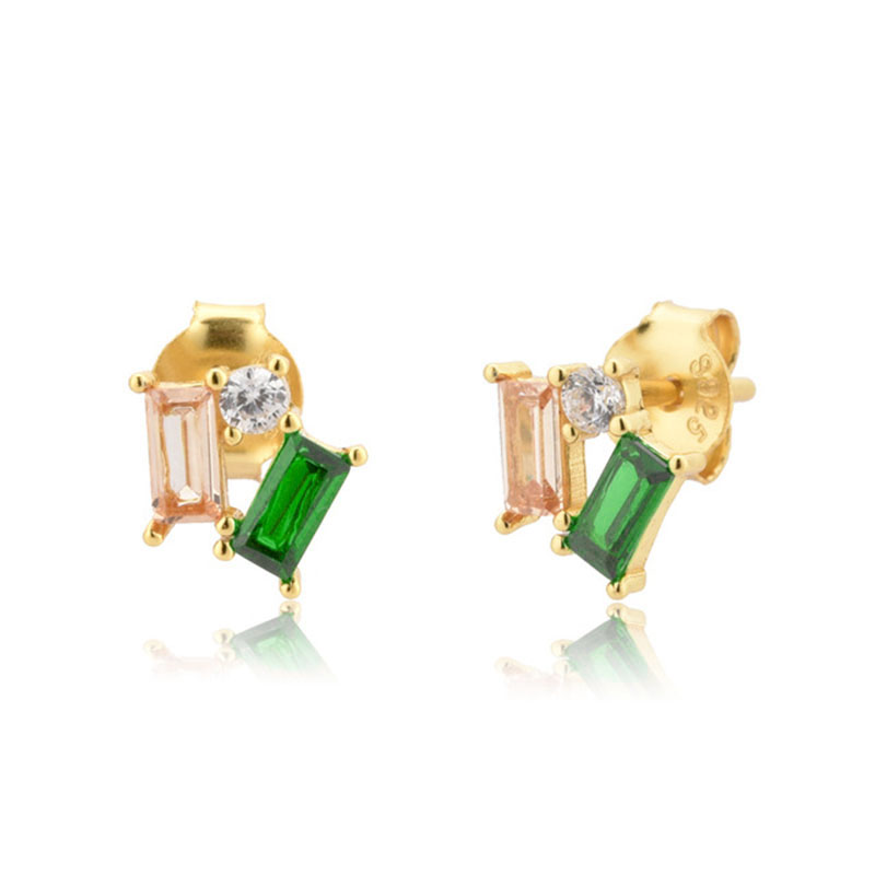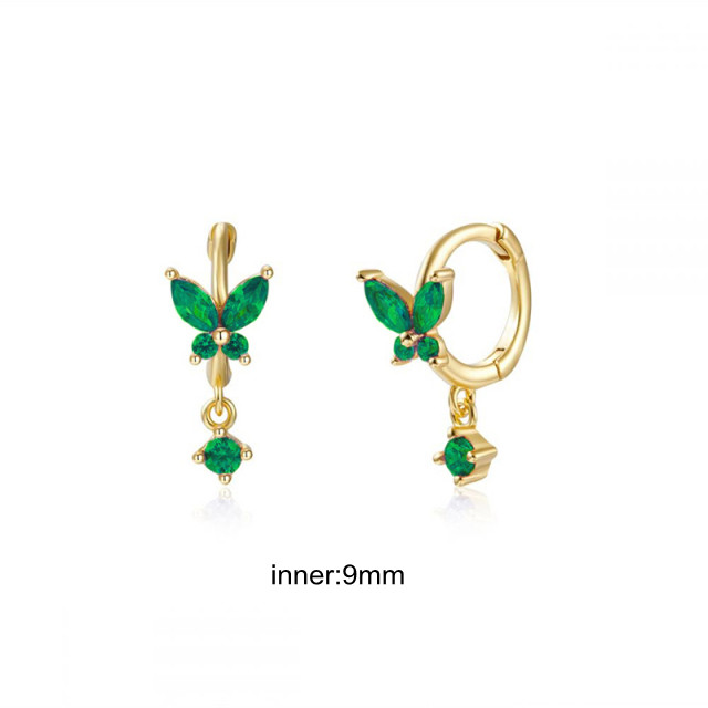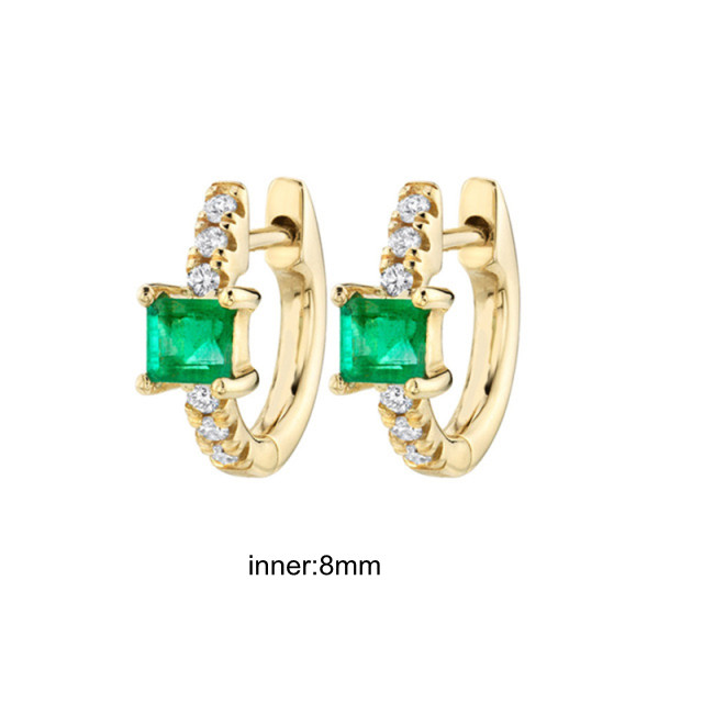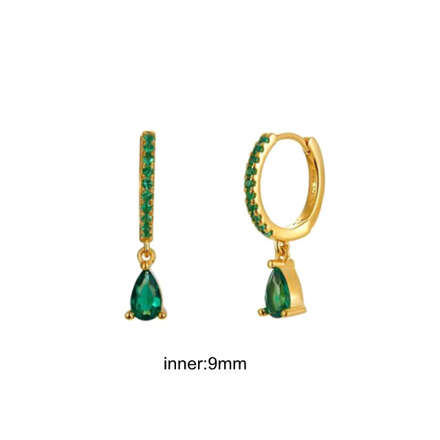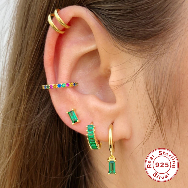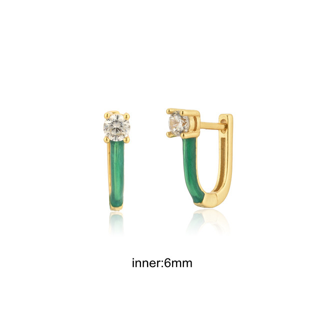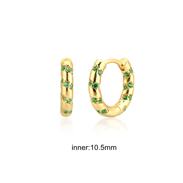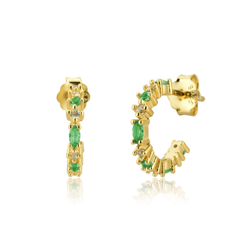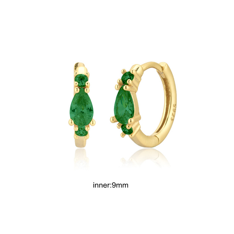 CCFJOYAS Green color Zircon Small Hoop Earrings for Women 925 Sterling Silver Green Gold Hoop Earrings Jewelry Arrival