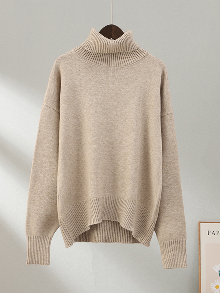 Casual Women's Knitted Solid Turtleneck Sweater Oversize Long Sleeve Ladies Loose Pullover Tops Autumn Warm Female Sweaters