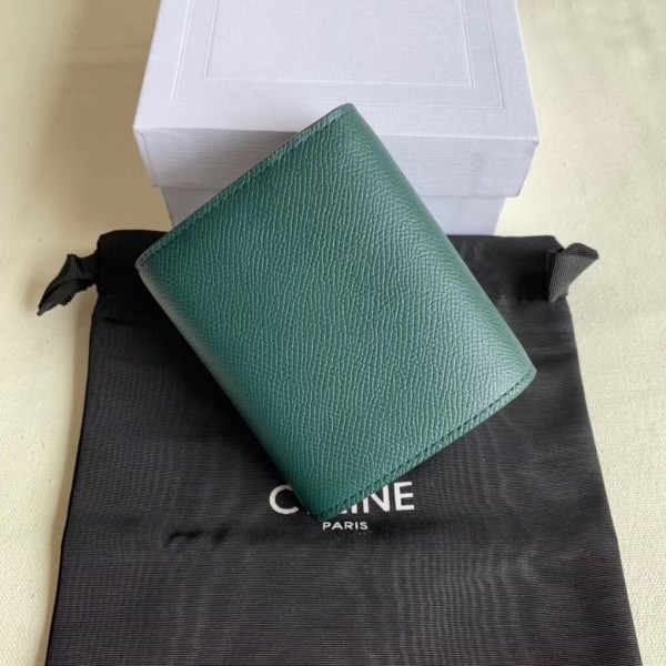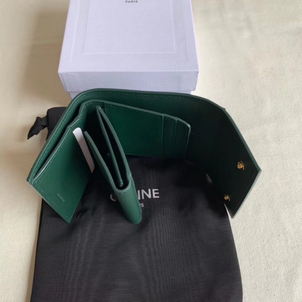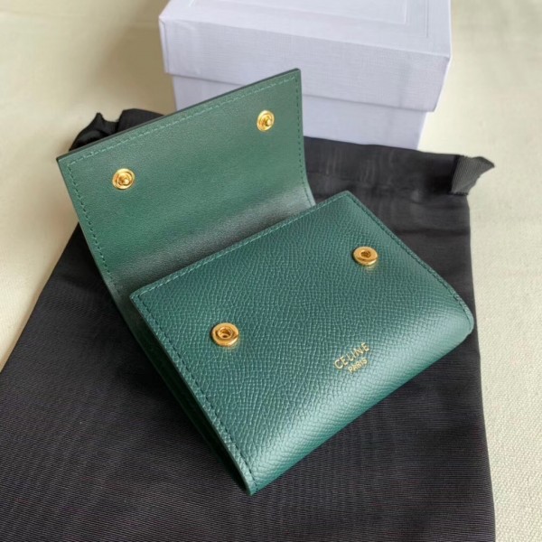 Crafted in grained calfskin leather by the House of Celine, this small trifold wallet with a flap offers enough space to fit into even a tiny bag or clutch, yet with space for coins, notes and credit cards, this neat wallet is the ultimate mini companion. Coupled with an elegant design with golden finishing touches.