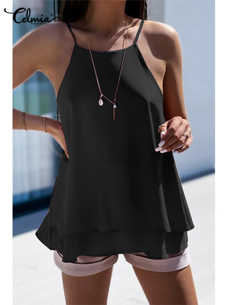 Celmia Women Sexy Camisole Casual Loose Ladies Thin Top Summer Sleeveless Layered Tanks Tops Leisure Solid Color Camis