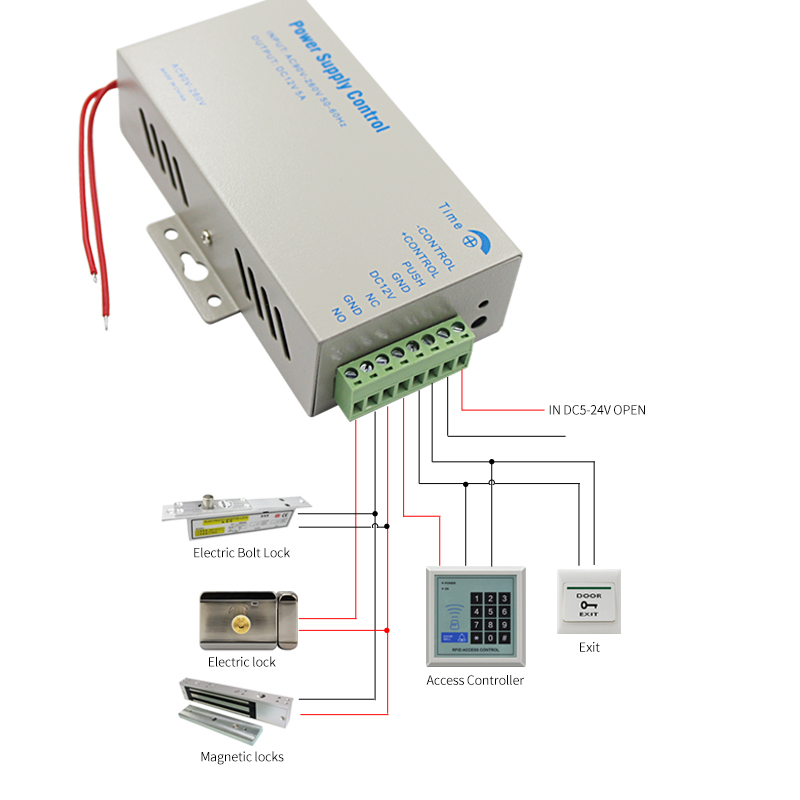This is a 110V--260V (12V5A) Access Control Power supply, it is made up of high quality electronic components and advanced international technology, it has anti-interference ability, provide very stable and reliable output in a various applications such as lock control/ controller control/ exit button/ RFID-IC Reader .etc.