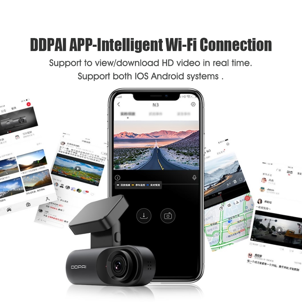 DDPAI N3 Built-in GPS accurately records your driving location and speed. View your driving route and tracker on google maps via Wi-Fi using the DDPAI App.