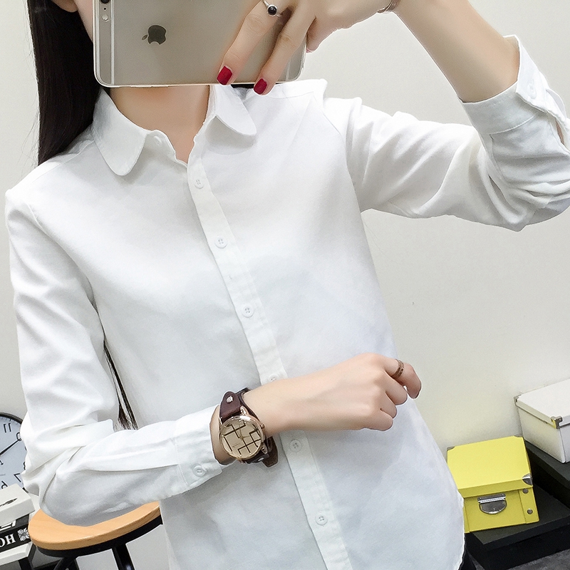 DIYUS Autumn Women Tops And Blouse Long Sleeve Cotton Oxford White Blue Woman Office Shirts Good Blusas Lady Tops