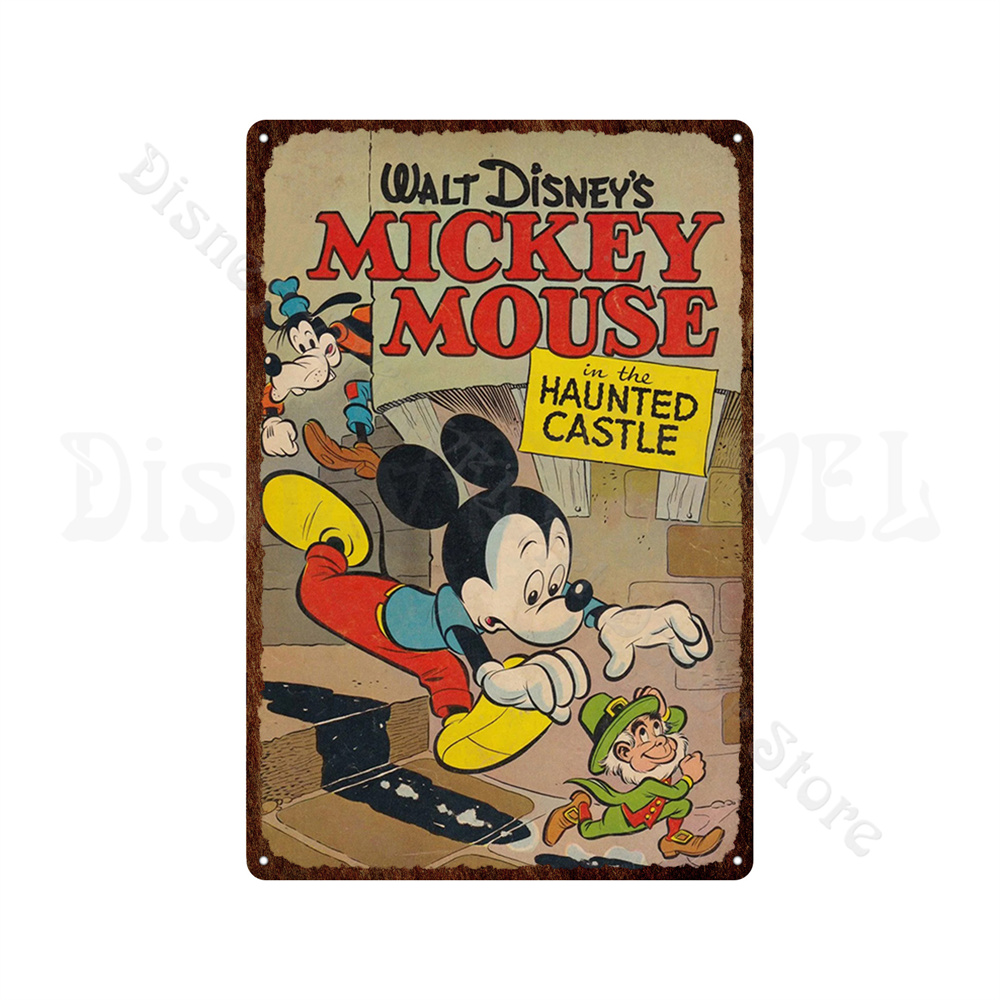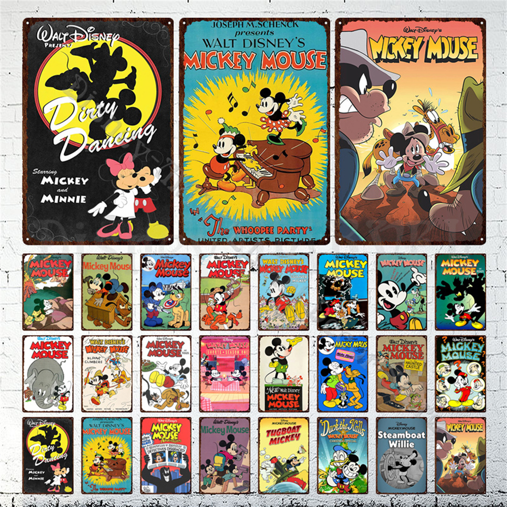 Disney Anime Metal Plaque Vintage Wall Decor Mickey Mouse Clubhouse Metal Wall Sticker Kids Room Playground Home Decor Tin Plate