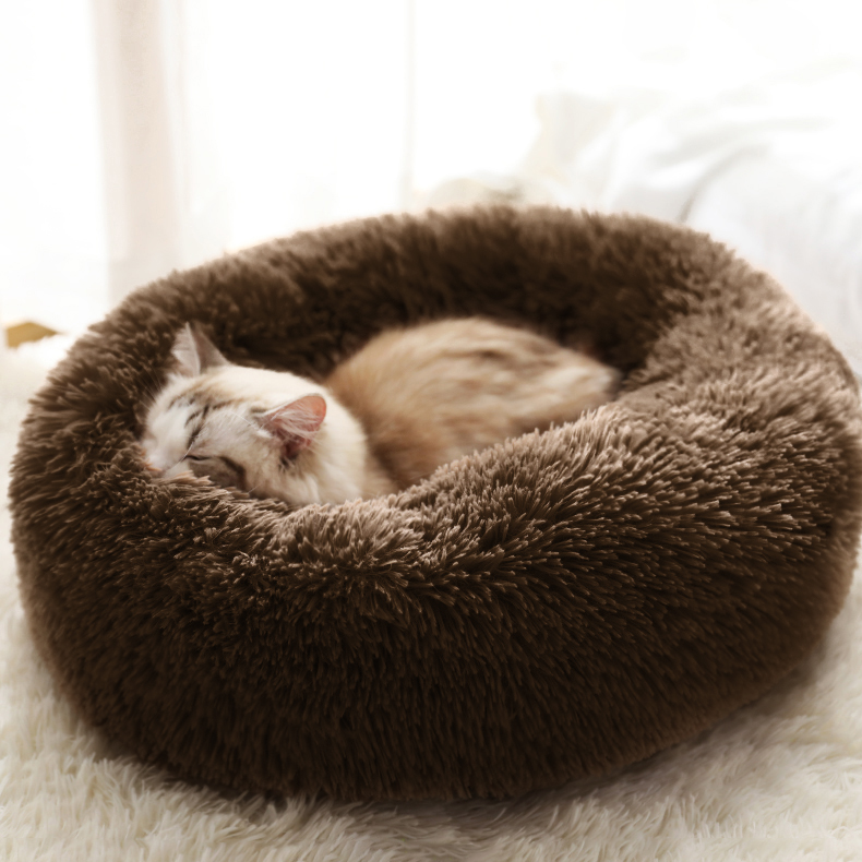 Dog Pet Bed Kennel Round Cat Bed Winter Warm Dog House Sleeping Bag Long Plush Super Soft Pet Bed Puppy Cushion Mat Cat Supplies