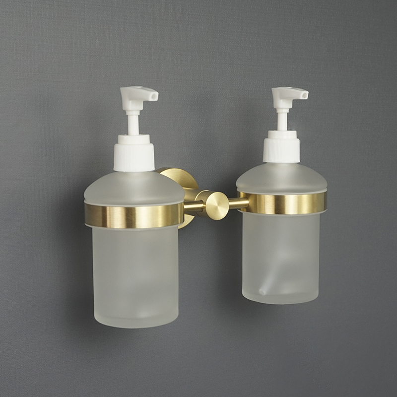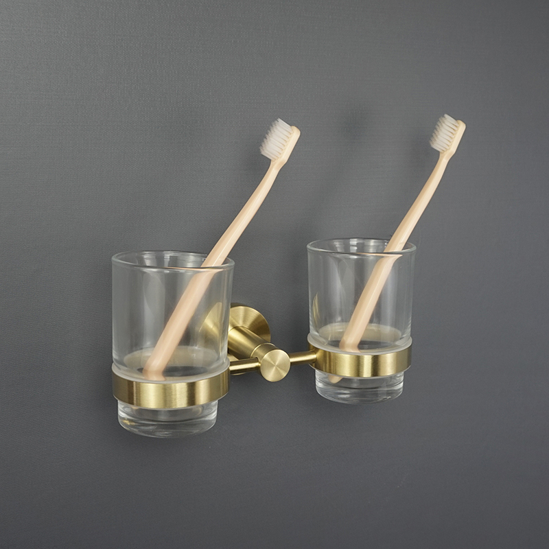 Double Toothbrush Holder Brushed Gold Cup Tumbler Holder Rack Wall Mount Glass Soap Dish Foam Dispanser Bathroom Accessories