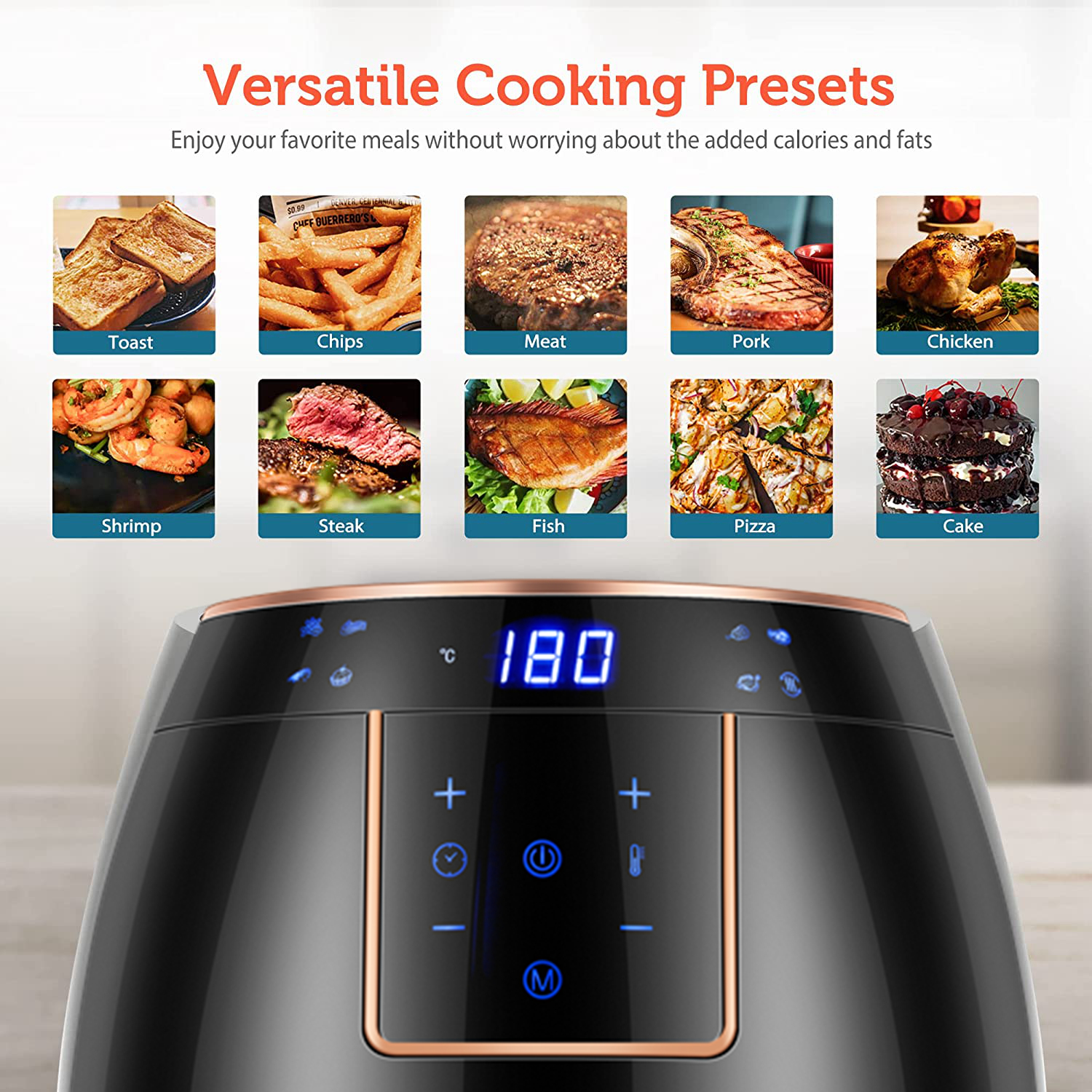 MULTIPLE COOKING OPTIONS and Various menus –this air fryer oven lets you fry, grill, bake and roast, for the ultimate cooking companion