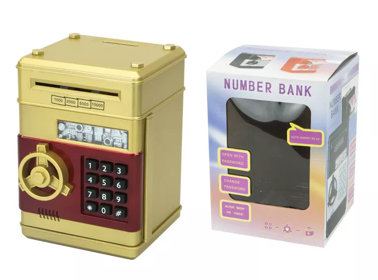 Features:High qualitySimulation safe structure, although the material is environmental protection ABS material, but did not enter the password to force open, is not an easy thing.Automatic money slotPut the banknote in the deposit port and gently push the contact switch, it will be automatically involved in the safe (note: the banknote that is too old and too soft may not be able to start the contact switch)Turn the unlock switchWithout the correct password input, this switch cannot be turned on. After entering the correct password, the green light will turn on to open the safe.Password keyboardFour electronic password protection, you can change your password, more secure and reliable. The 4-digit password can be set at will, and the default factory password is 0000. If you forget the password, you can take out the battery and let it sit for a period of time to restore the factory Settings. Large spaceVery large space, not only can storage money, also can deposit a few illicit close gadgets among them. Coin slot & voice & storage stuffWith a password, voice, in addition to saving money, but also to establish savings goals, financial planning. Can be used to store toys, jewelry, bankbooks, etc. The slot in the coin slot can hold COINS or paper money.Using operatingTo open the safe box, first enter a four-digit password. The default is: 0000Follow these steps to use the safe box:Enter a four-digit password and the green light will turn on. If you enter the wrong password, the red light will light up and you will hear "please try again". Turn the knob clockwise to open the door. If the green light is on for about 10 seconds, you'll hear a creak as the door opens. If the door has been open for more than 10 seconds, the green light goes off and beeps every 20 seconds. To stop the beeping, close the door. Put the paper money into the mouth of the paper money. The paper money can be entered directly. Then you can withdraw money directly by pressing the code.When you are finished, close the door and lock it.To change your password, follow these steps:Enter the current password (original password 0000) to open the safe door.Long connect "*" key, indicator light flashes.Enter the new 4-digit password within 15 seconds, press "#" to confirm the storage of the new password, and the light will stop flashing.Note: if the new password is not entered within 15 seconds, the program will stop and must be restarted.Release the "*" button and close the door.Bleep or voice: enter your current password and open the doorPush the switch (back of the door) left or right to set the beeping or talking sound and close the safe cabinet doorSpecifications:Type: ATM password box automatic money boxQuantity: 1pcMaterial: ABS + electronic componentsColor: Silver/golden/ blue/pink/blackBattery: 3*AA battery (Not included)Size: 13*12.5*19.5cm/5.1*4.9*7.7” (L*W*H)Package: 1* ATM password box automatic money box1* screwdriver1* English and Chinese user manual
