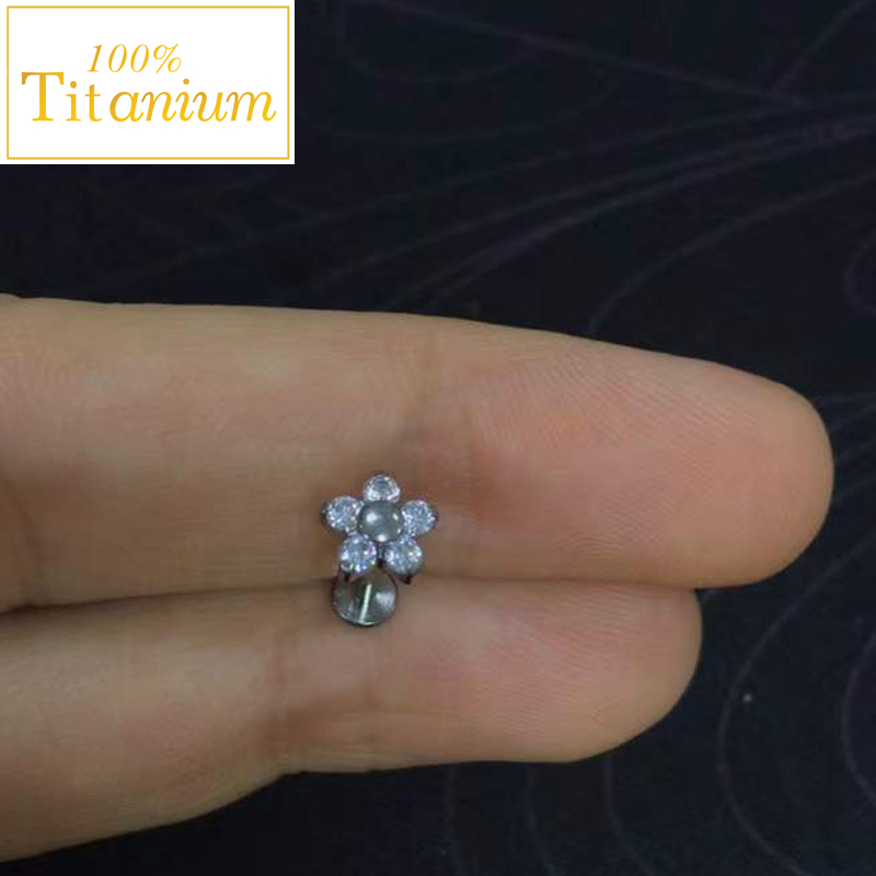 1PC F136 Titanium Labret Piercing Lip Studs Cartilage Tragus Helix Piercing Ear Nails Zircon Flower Earrings Body Perforated Jewelry