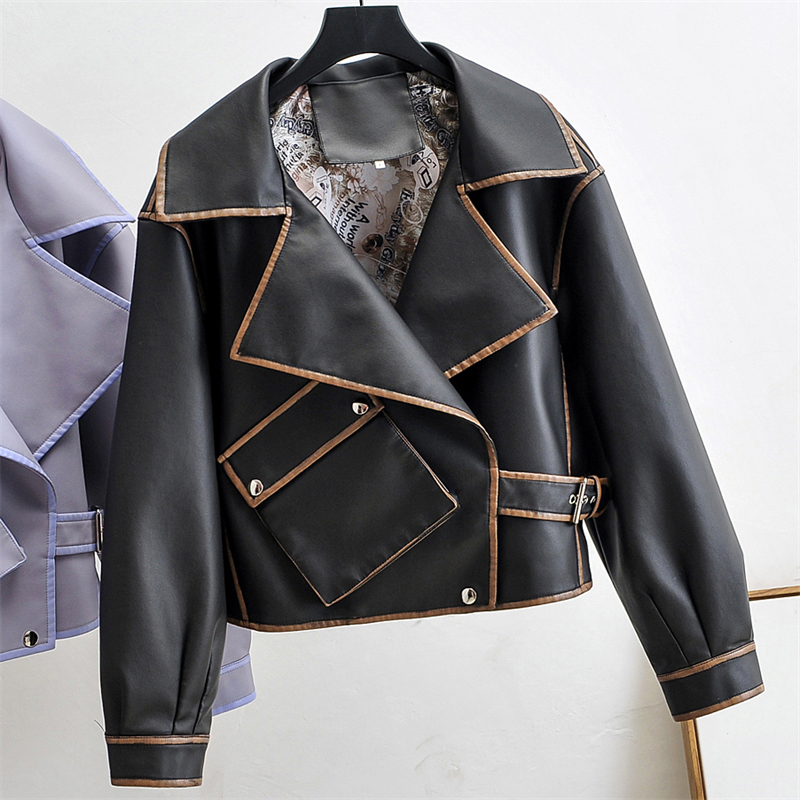 Faux Leather Jacket Women Casual PU Loose Motorcycle Jackets Female Streetwear Oversized Coat Chic Spring Autumn