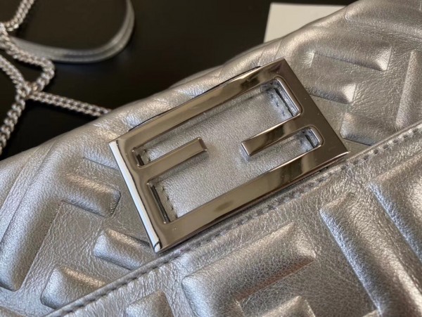 Fendi Baguette Mini Bag In Silver Lambskin With FF Motif