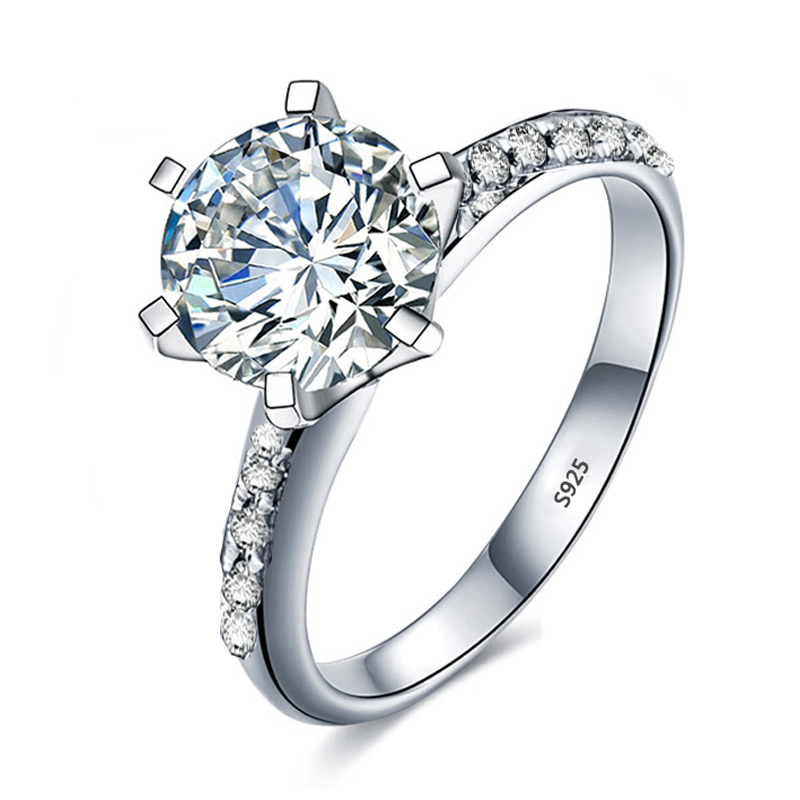 Free Get Earrings Original With Credentials 18K White Gold Color Ring 2.0ct Created Diamond Wedding Band Rings For Women