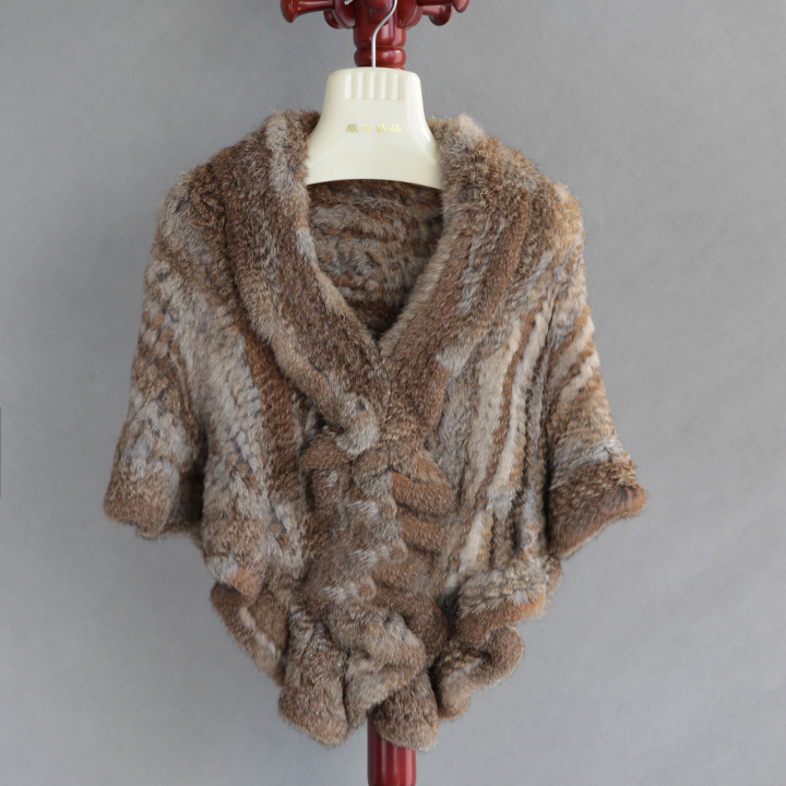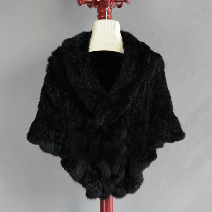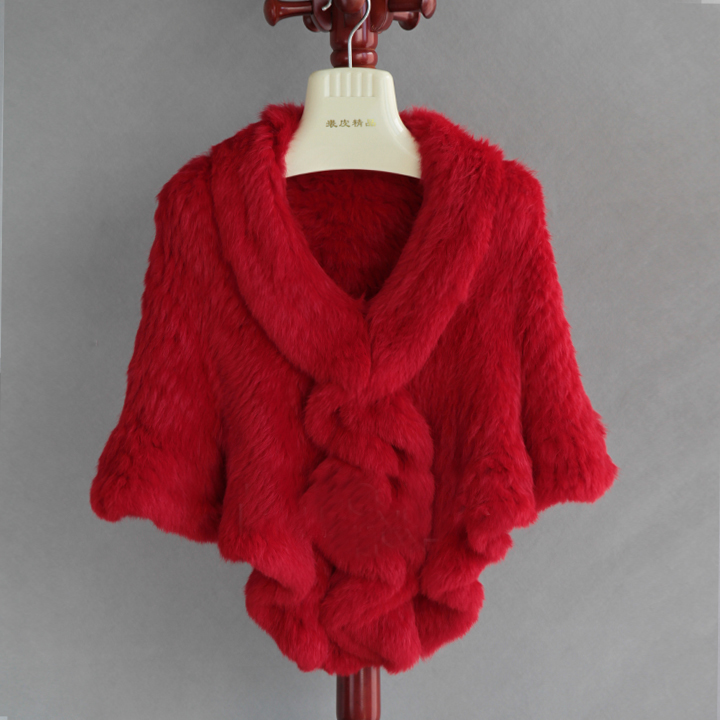 Genuine real natural women's knitted rabbit fur shawl girl's coat shawls