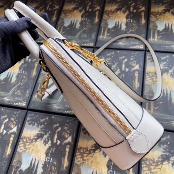 Gucci 1955 Horsebit Small Top Handle Bag In White Calfskin