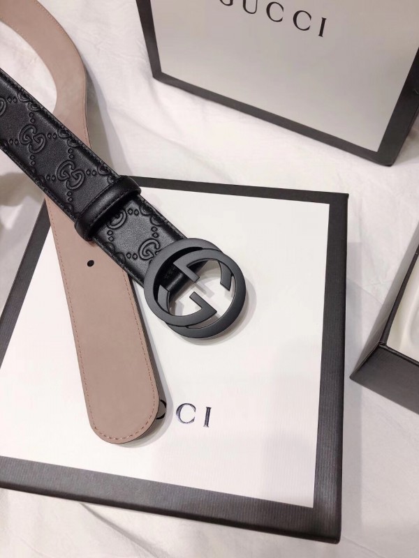 Offering an exciting update to a cult classic, Gucci introduces this belt. Featuring the new Interlocking G buckle to the fore and a debossed Gucci Signature leather strap, it packs a powerful sartorial punch whether you style it atop jeans or to cinch the waist of a billowing summer dress.