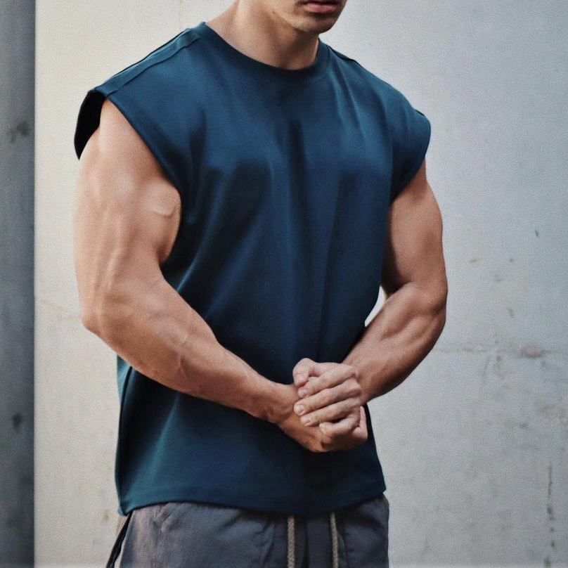 Gym Bodybuilding Slim Men Shirts sleeveless O-neck Sleeves Cotton Tee Tops Clothing Summer Workout Fitness top tank T-shirt