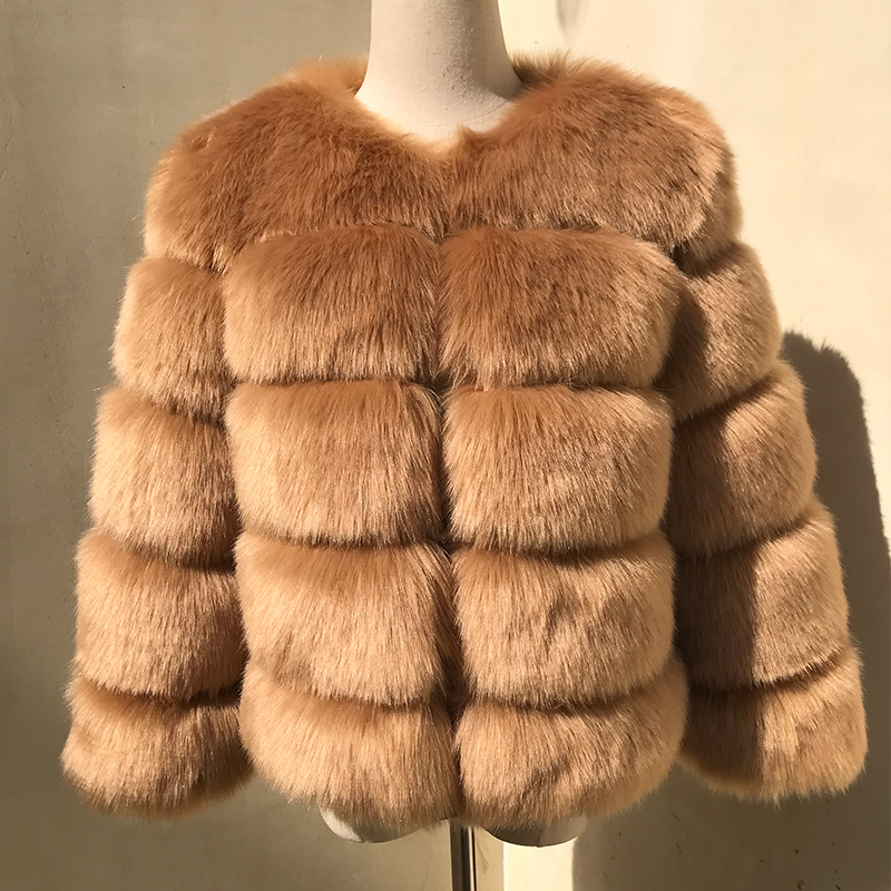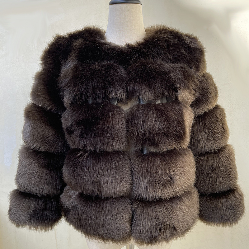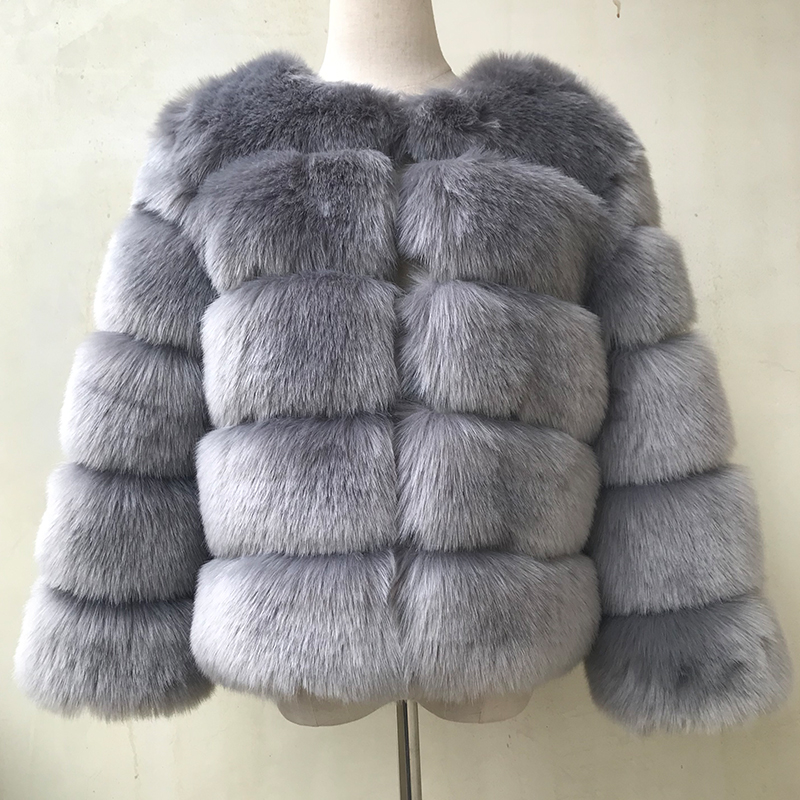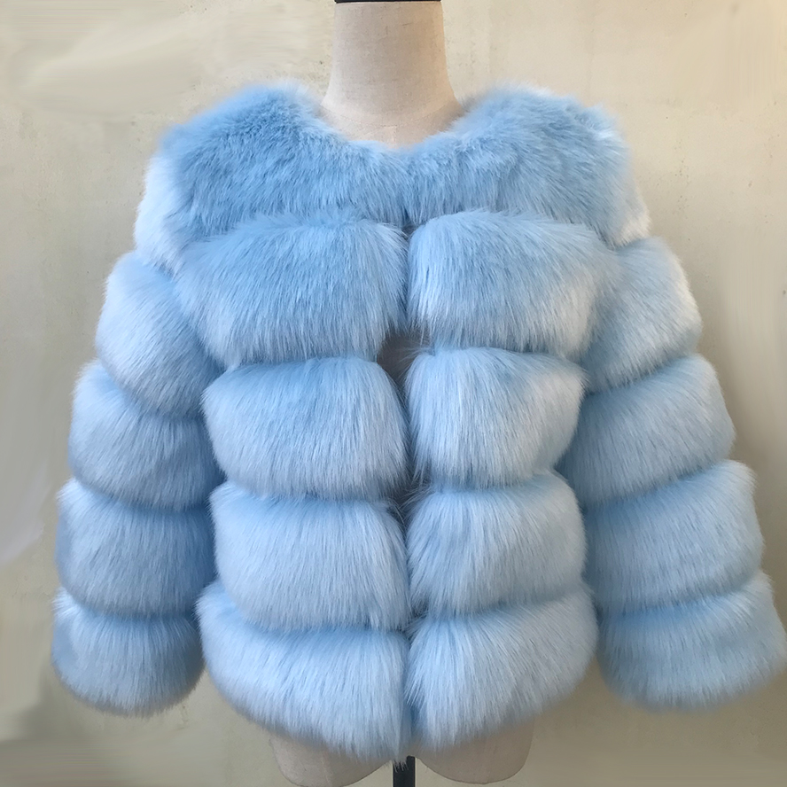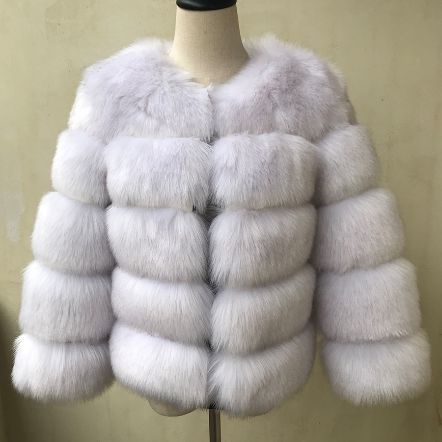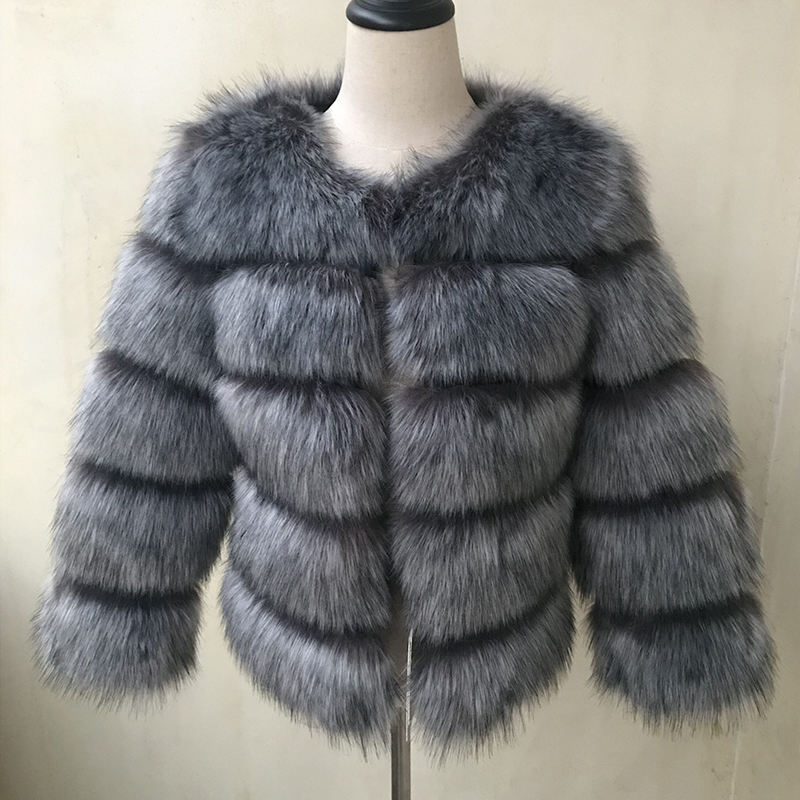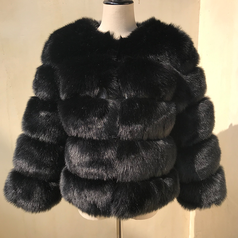 HJQJLJLS Winter Women Faux Fur Coat Female Black Elegant Fluffy Thick Warm Artificial Fox Fur Jacket Outerwear
