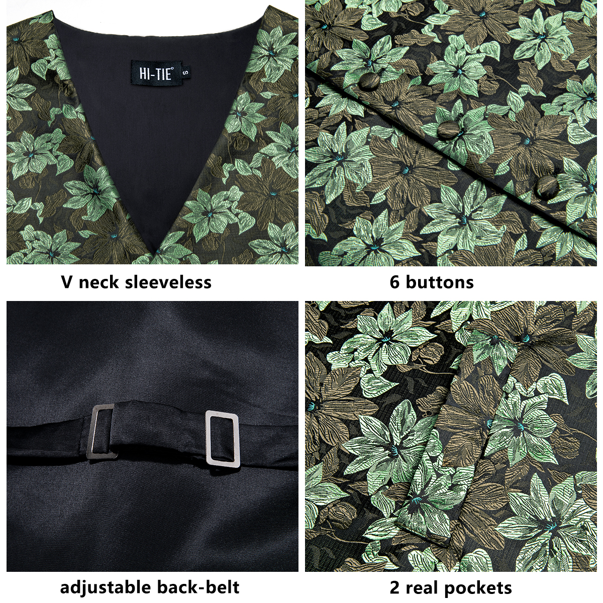 Hi-Tie 30 Colors Silk Mens Vests Jacquard Paisley Floral Waist Coat Jacket Necktie Hanky Cufflinks for Men Sleeveless XXXL
