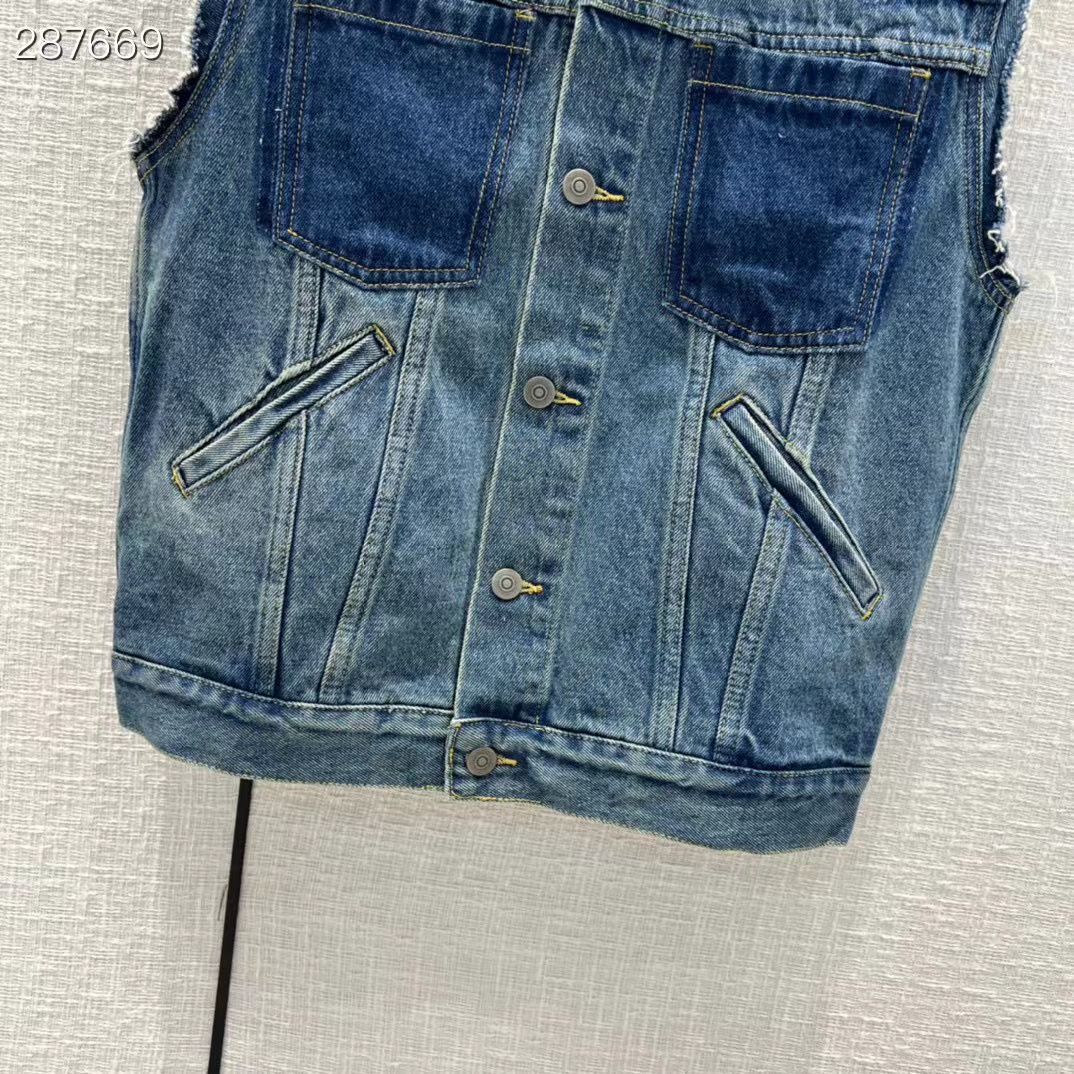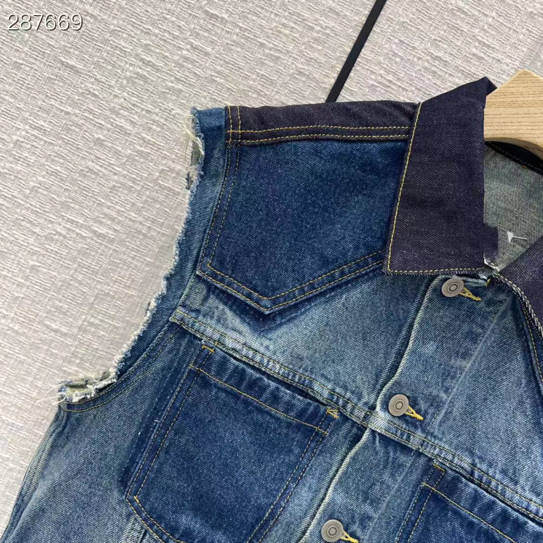 High Runway Design Denim Vest Women Summer Single Breasted Femme Blue Ladies Denim Vest Coat