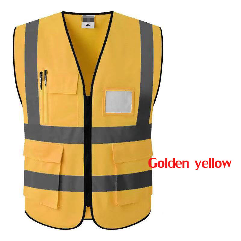 High Visibility Zipper Front Safety Vest With Reflective Strips Bicycle and Motorcycle Riding Safety Clothing Multi-Pockets