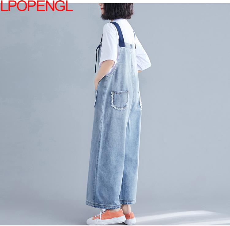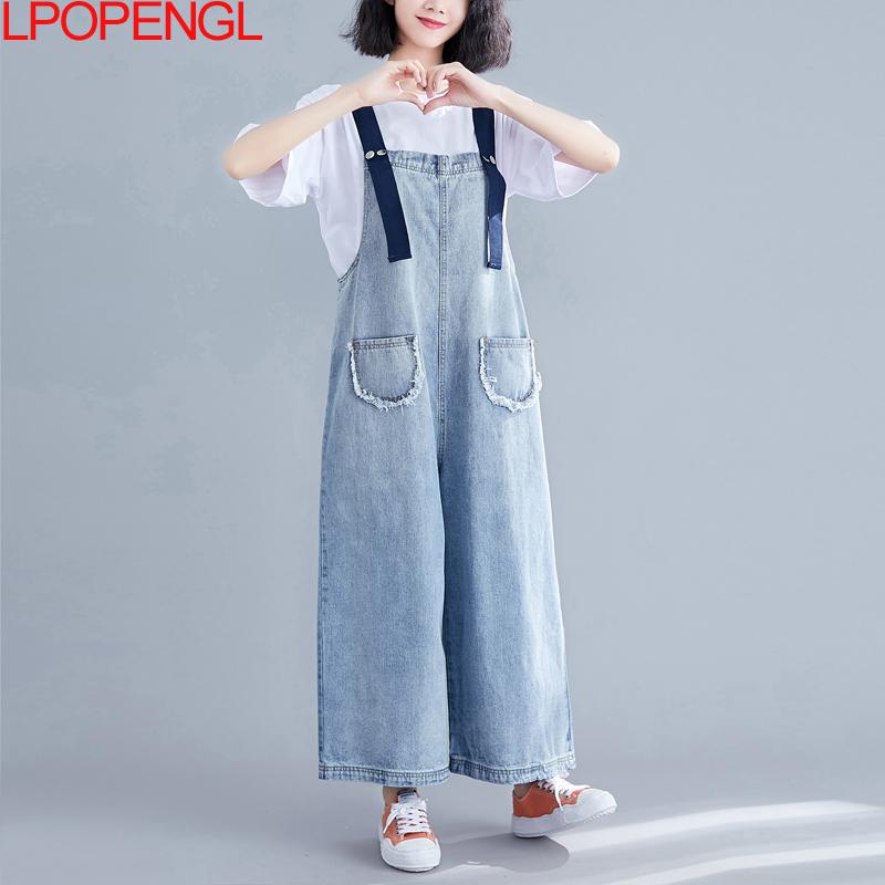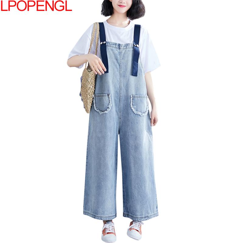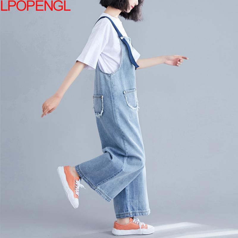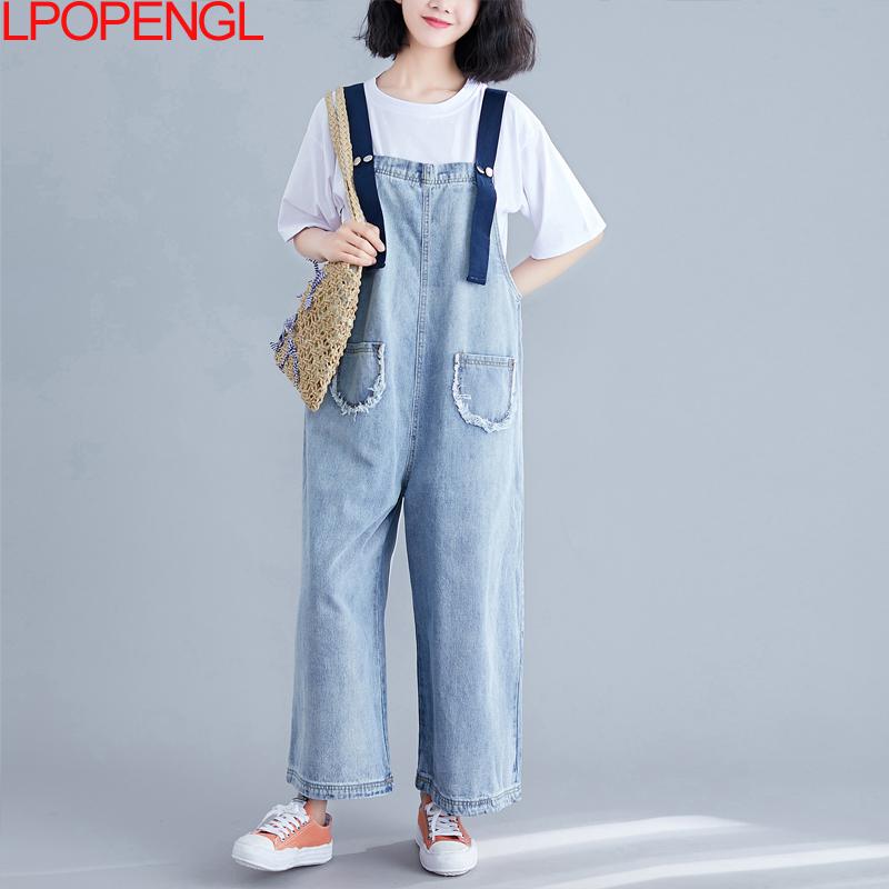 High Waist Denim Bib Women Thin Pants Look Thin Jeans Loose Wide-leg Nine-point Overalls Jumpsuit Streetwear Summer